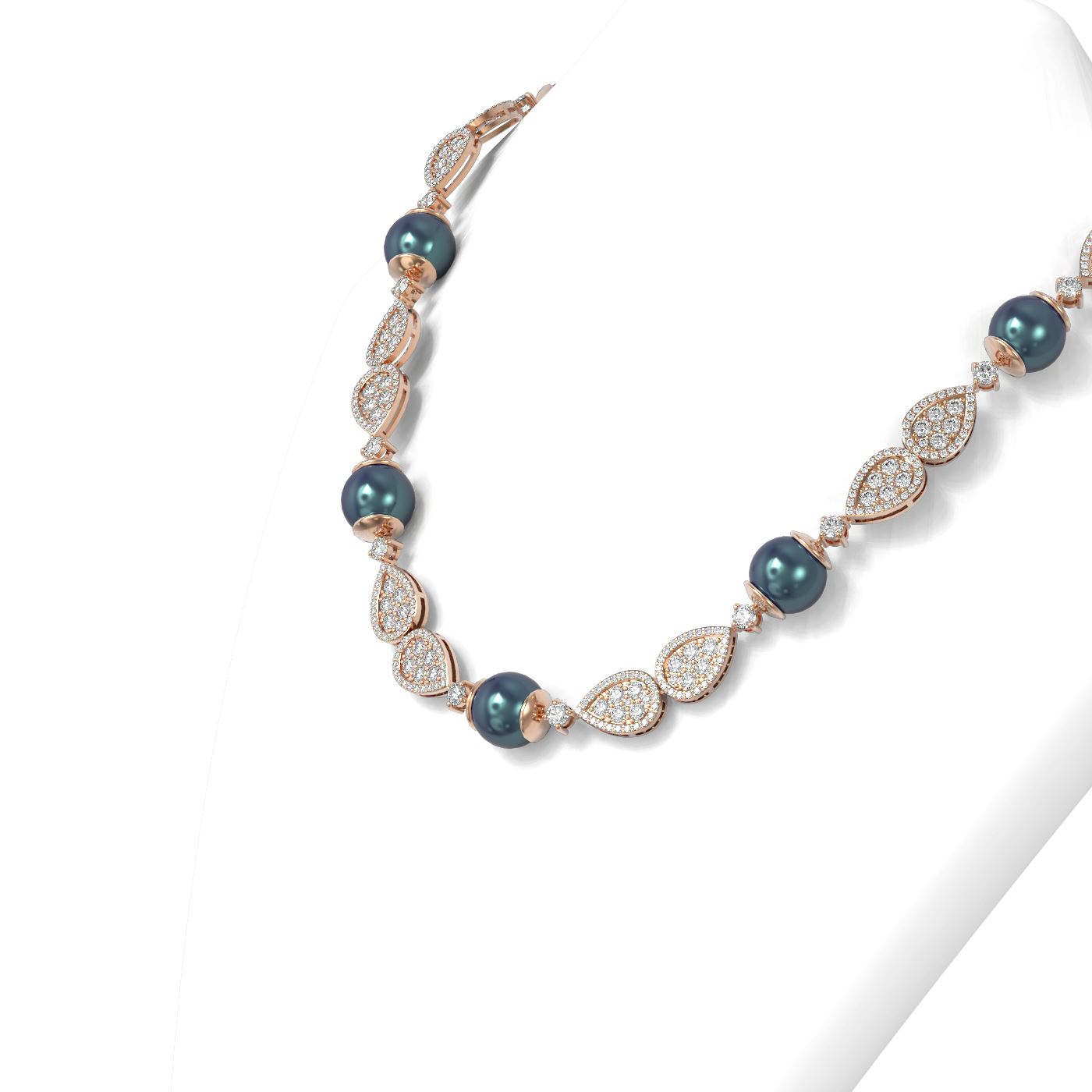 17.27 ctw Diamond and Pearl Necklace 18K Rose Gold