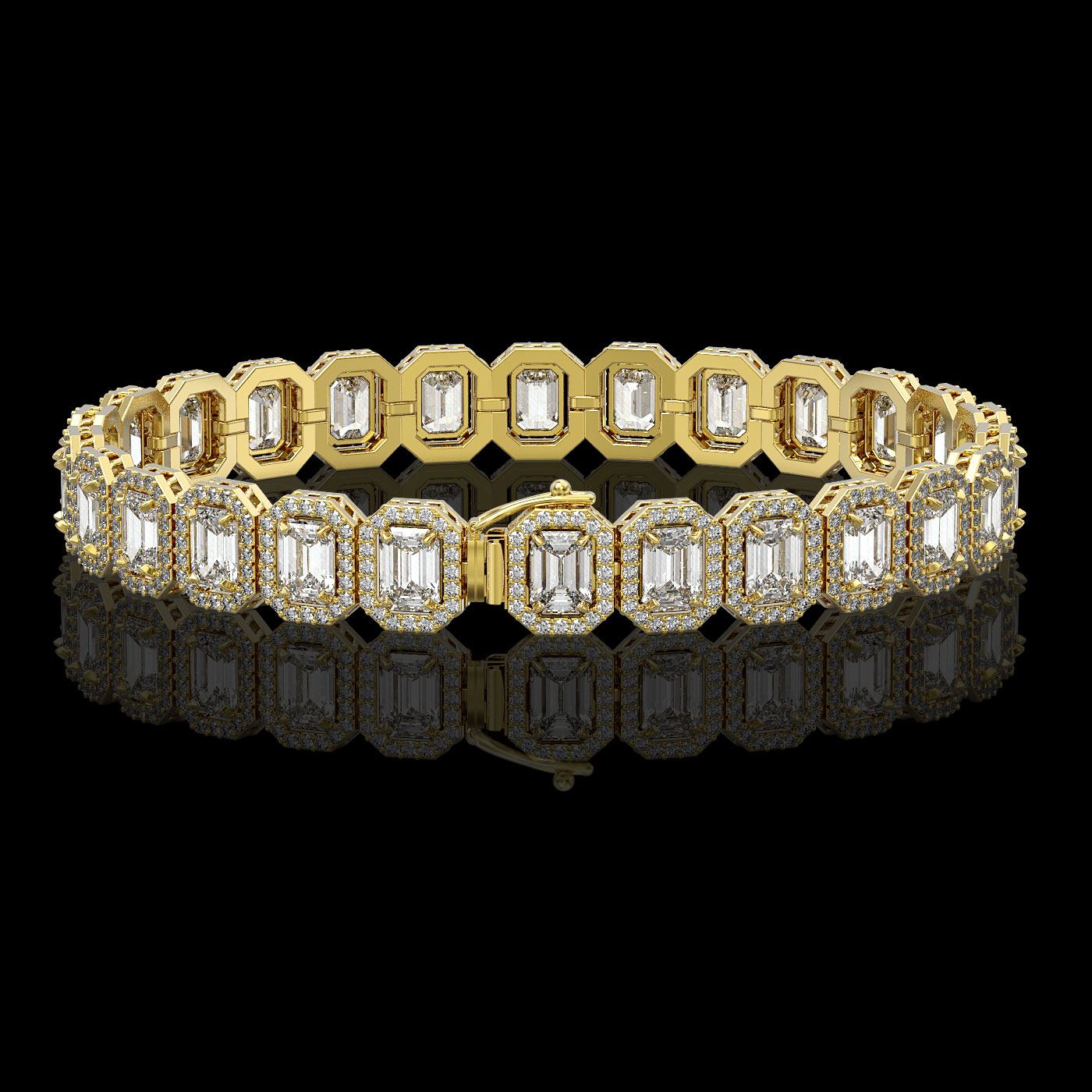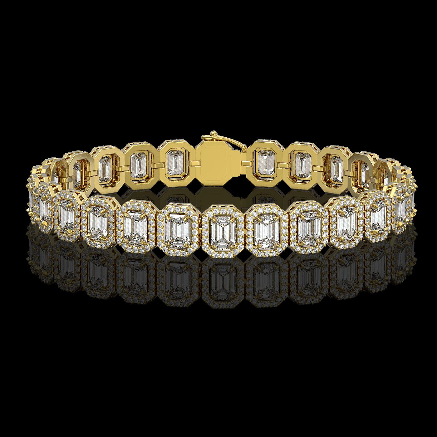 SKU: 42790 ---- 17.28 ctw Emerald Cut Diamond Micro Pave Bracelet 18K Yellow Gold