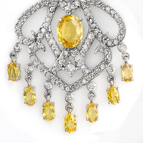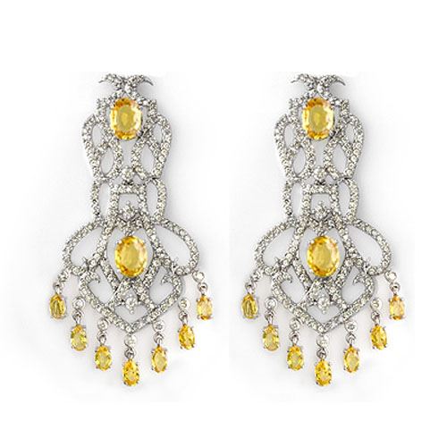 REF-564W5F -11101 ---- 17.30 CTW Yellow Sapphire & Diamond Earrings 18K White Gold ---- Luxury Designer Brand Earrings Appraised at $40,350 Certificate Number US11101 18k White gold, Earrings Size is 2 1/2 Inches, Earrings measuring approx. 1 1/8" x 2 1/2", weighing in total approx. 32.5845 grams. Made in the USA and is stamped 18k, Main stone 12 carat total weight containing 18 pieces of Translucent Yellow color with AA quality Oval shape cut Sapphire , Stone #2 5.3 carat total weight containing 370 pieces of H-I color with VS/SI quality Round shape cut Diamond