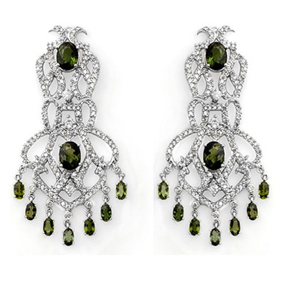 SKU: 11171 ---- 17.30 ctw Green Tourmaline & Diamond Earrings 14k White Gold