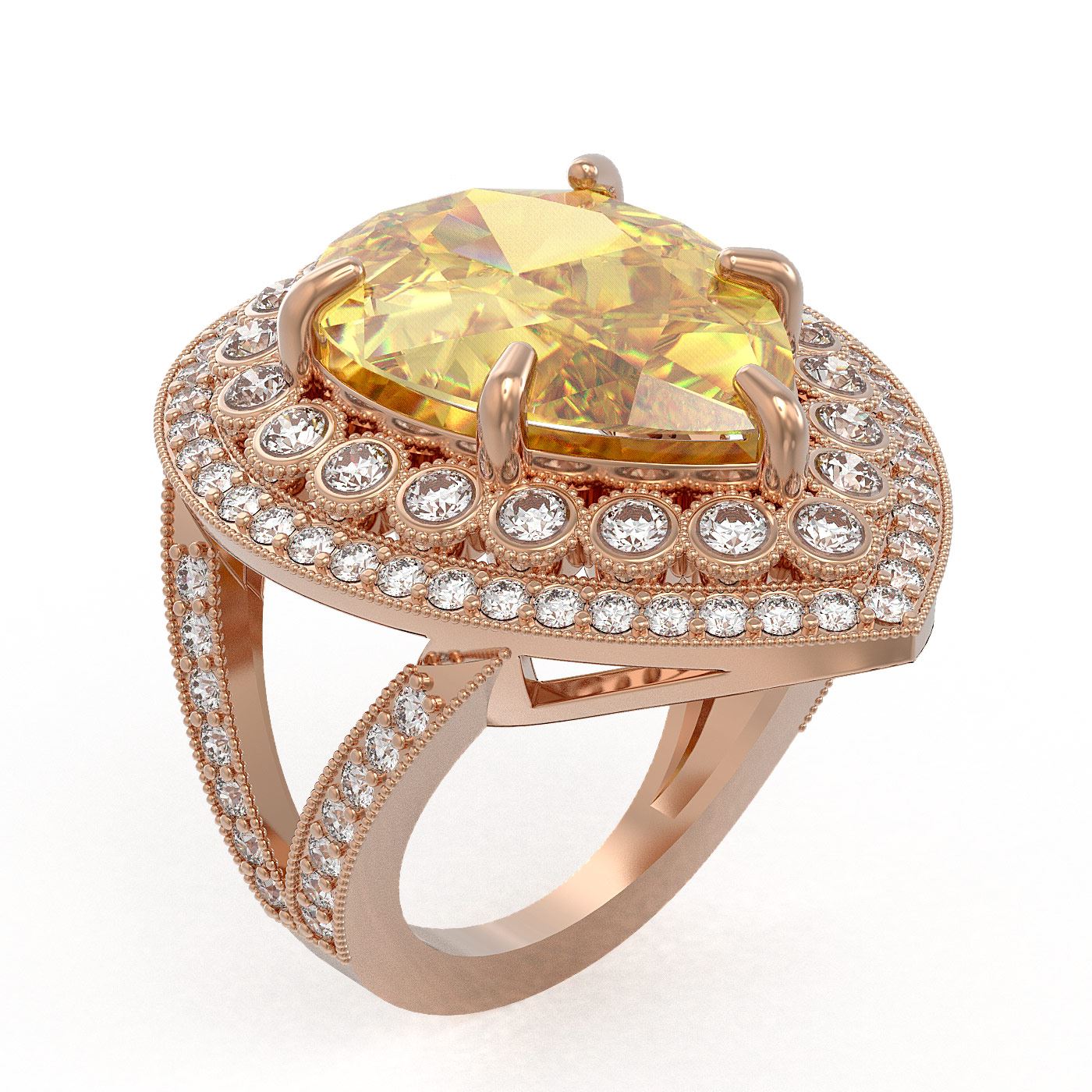 SKU: 43293 ---- 17.38 ctw Canary Citrine & Diamond Victorian Ring 14K Rose Gold