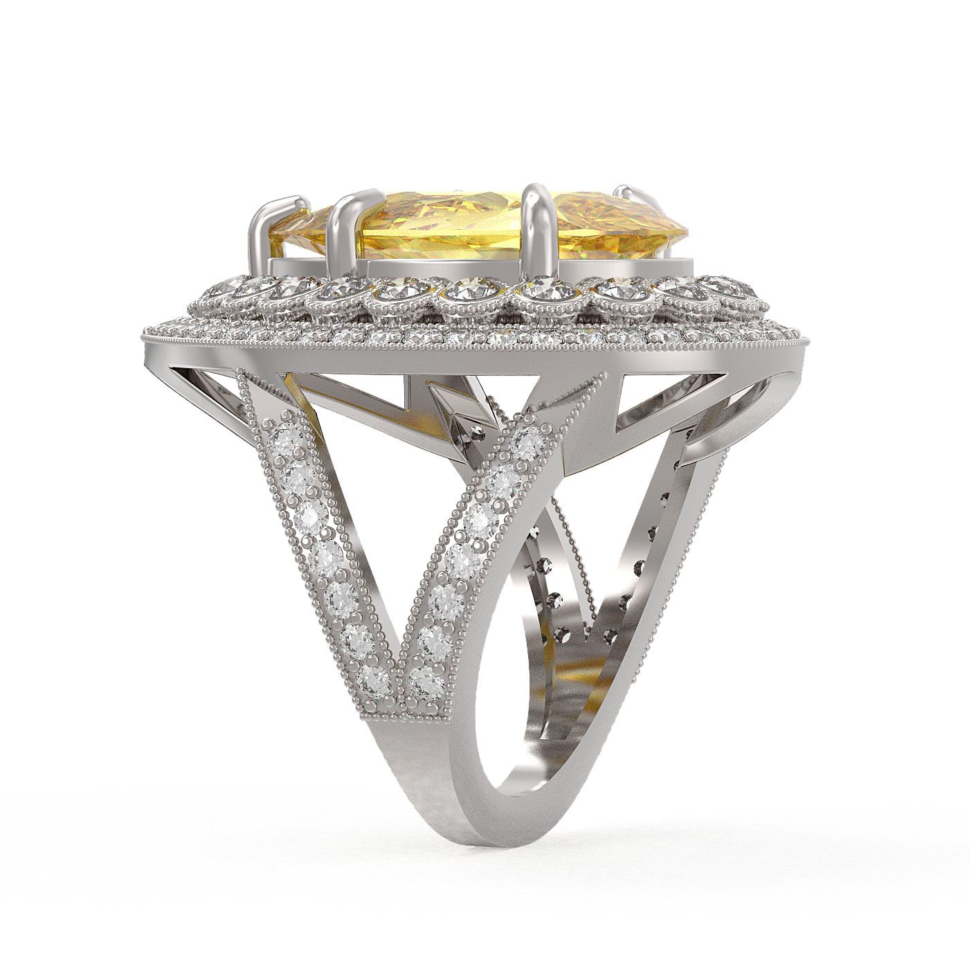 REF-250R5K - SKU: 43292 ---- 17.38 ctw Canary Citrine & Diamond Victorian Ring 14K White Gold