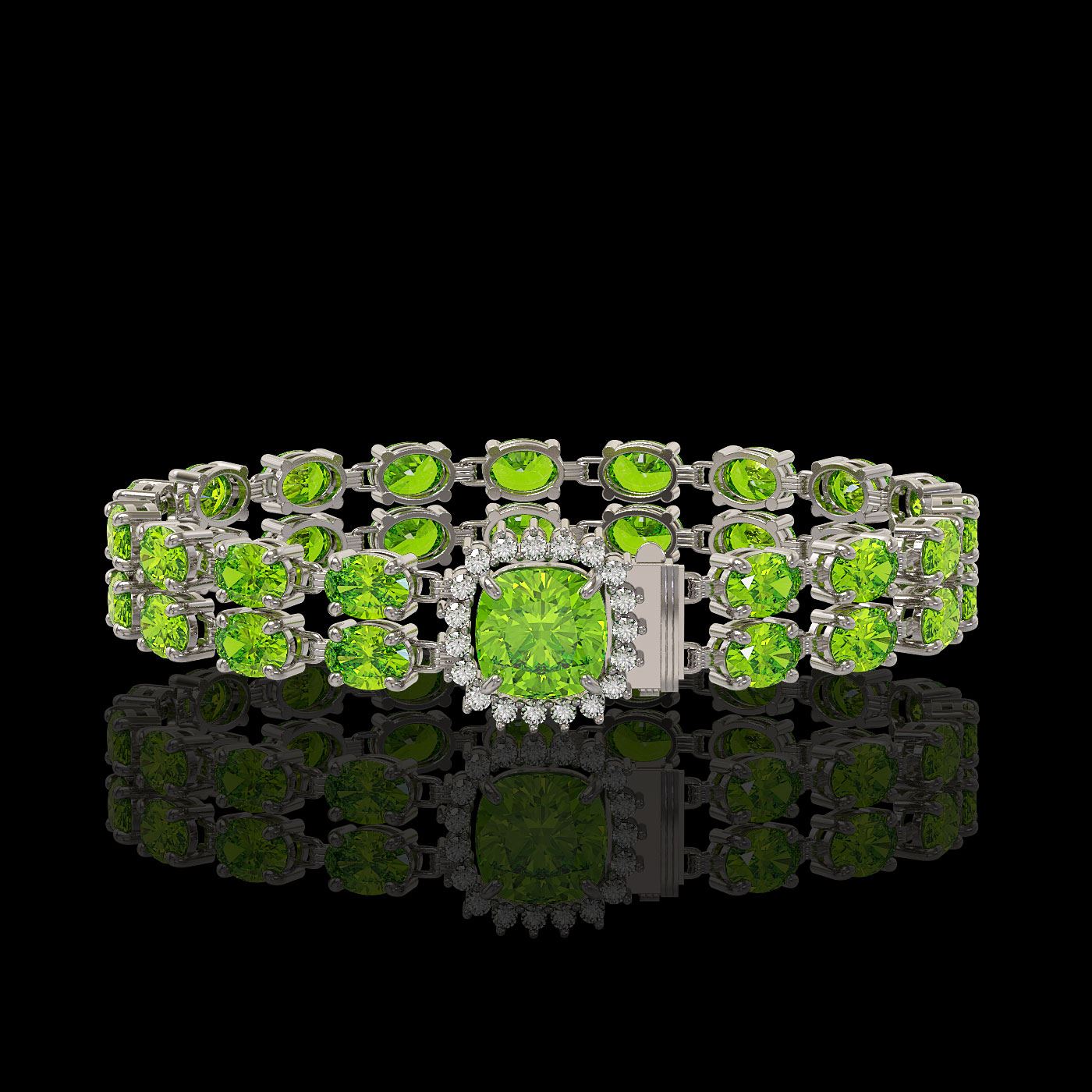 REF-245F5M - SKU: 45620 ---- 17.4 ctw Peridot & Diamond Bracelet 14K White Gold