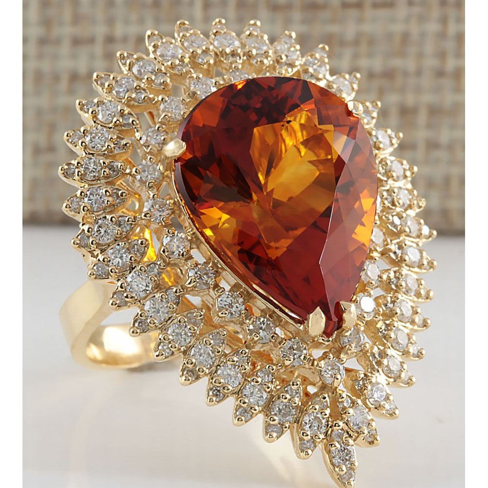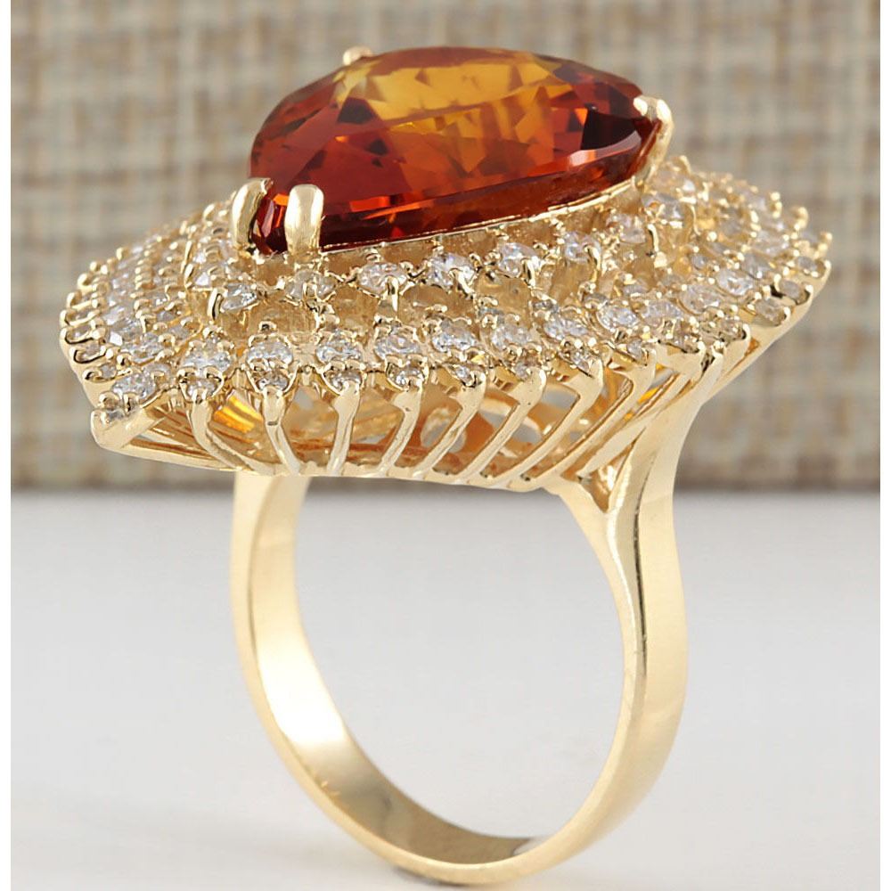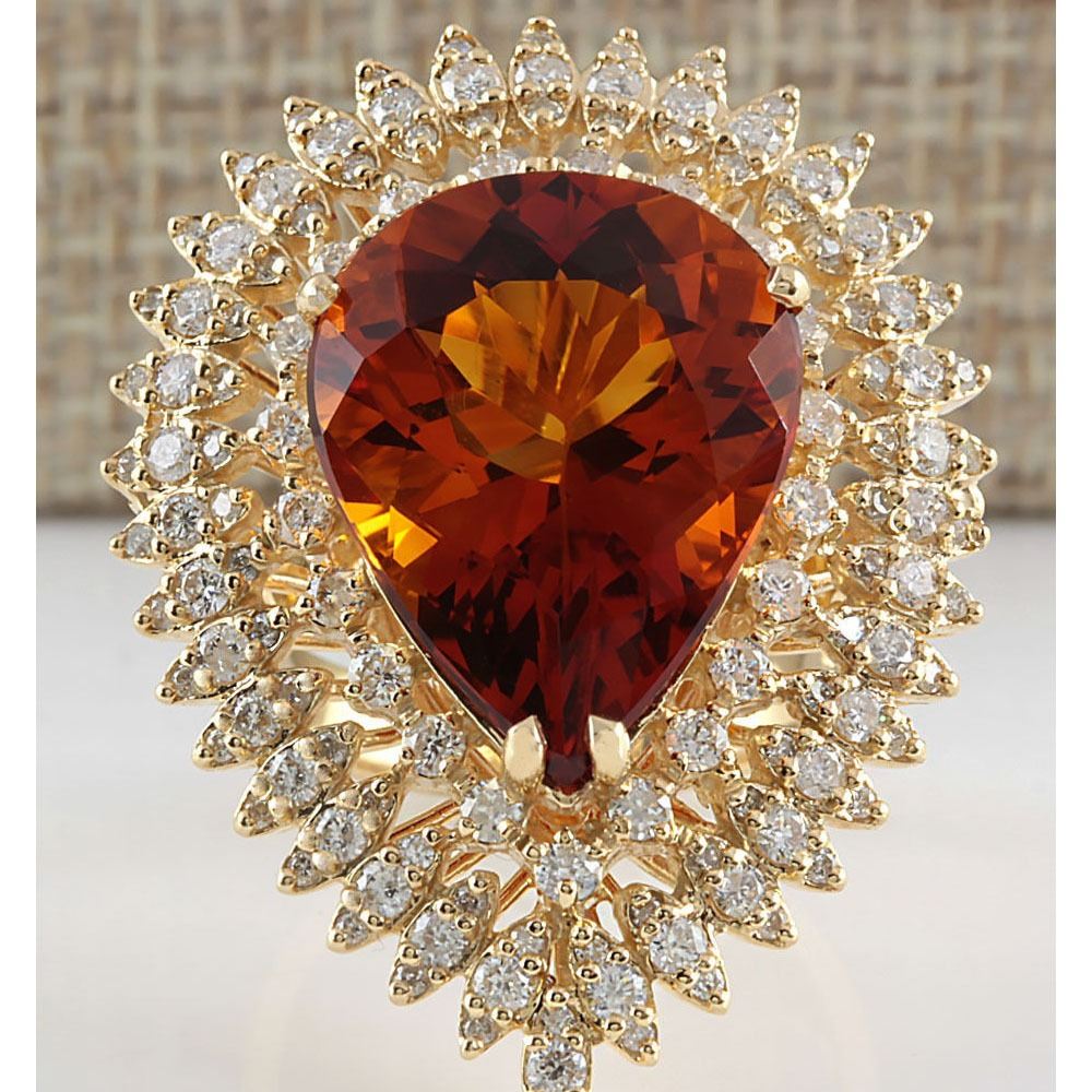 17.40 CTW Natural Madeira Citrine And Diamond Ring 14K Solid Yellow Gold