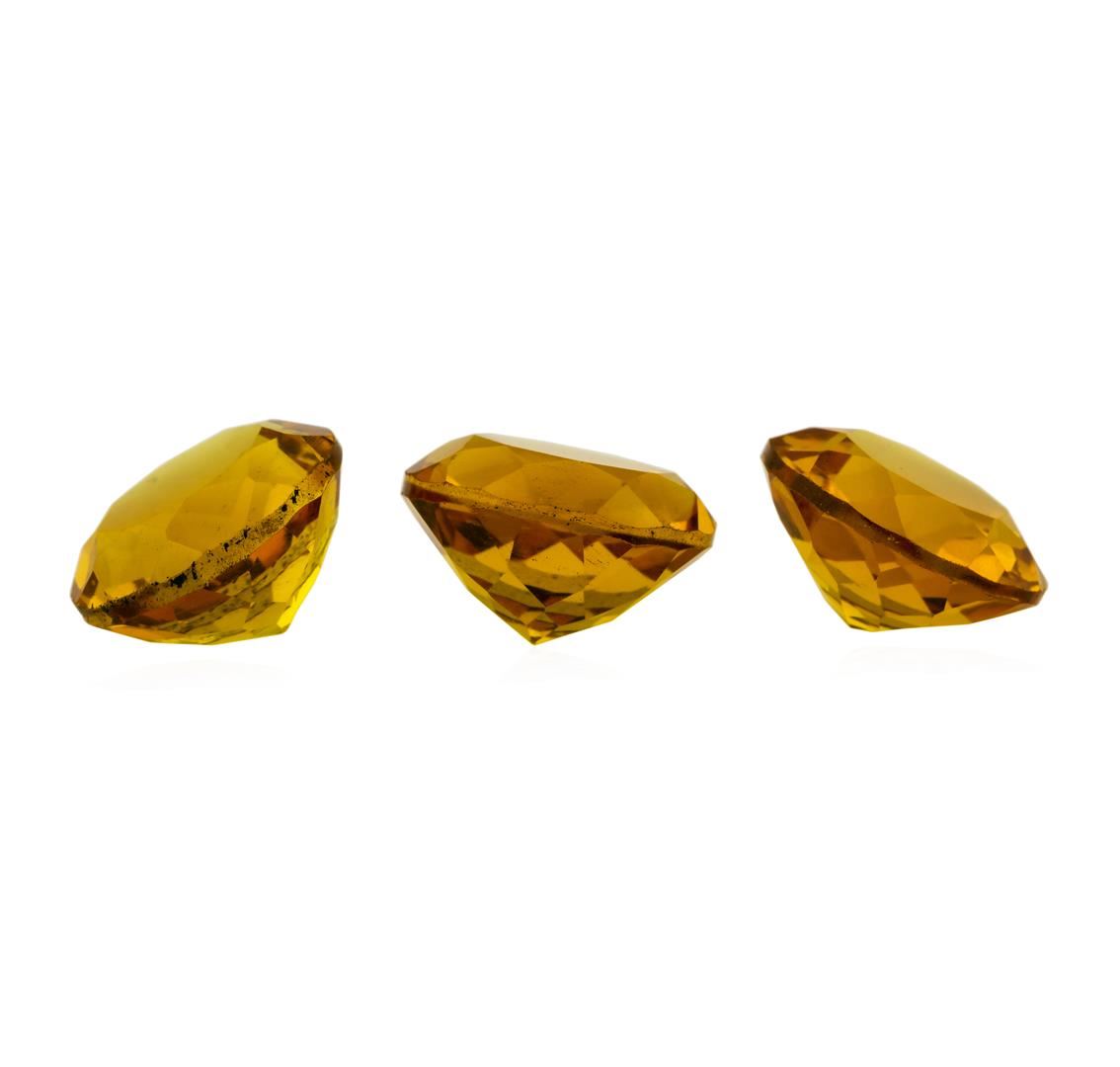 One natural round cut citrine quartz parcel of three with an exact weight of 17.41ctw., clarity is eye clean, yellowish orange, medium dark. Gemological Appraisals Services estimates the retail value at $696.4 GAS Appraised.