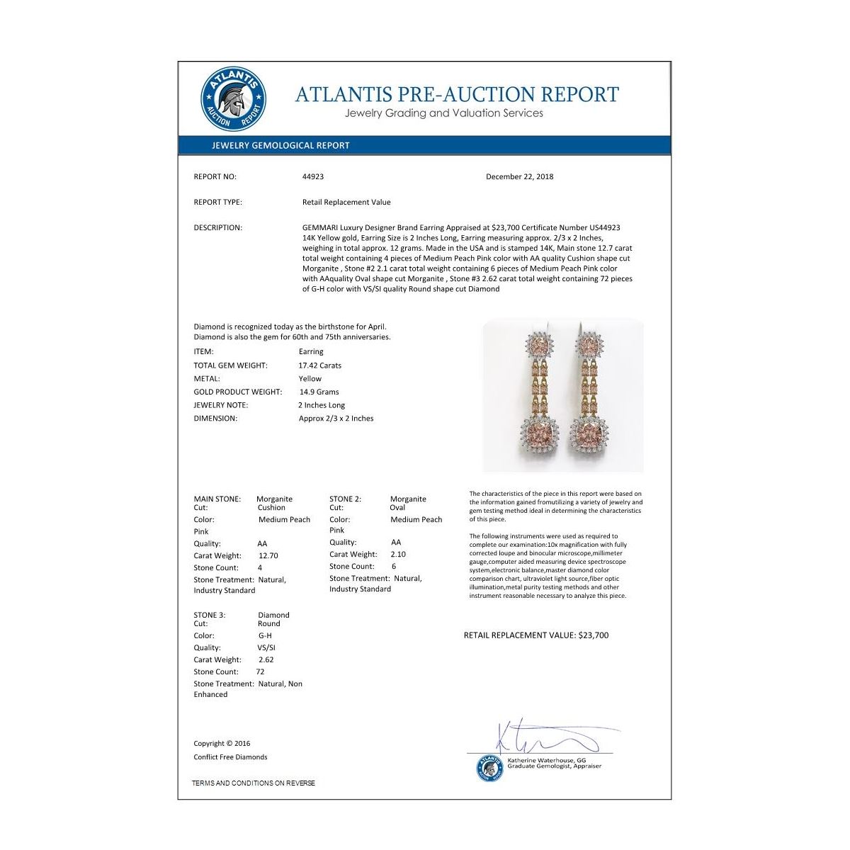 17.42 ctw Morganite & Diamond Earrings 14K Yellow Gold
