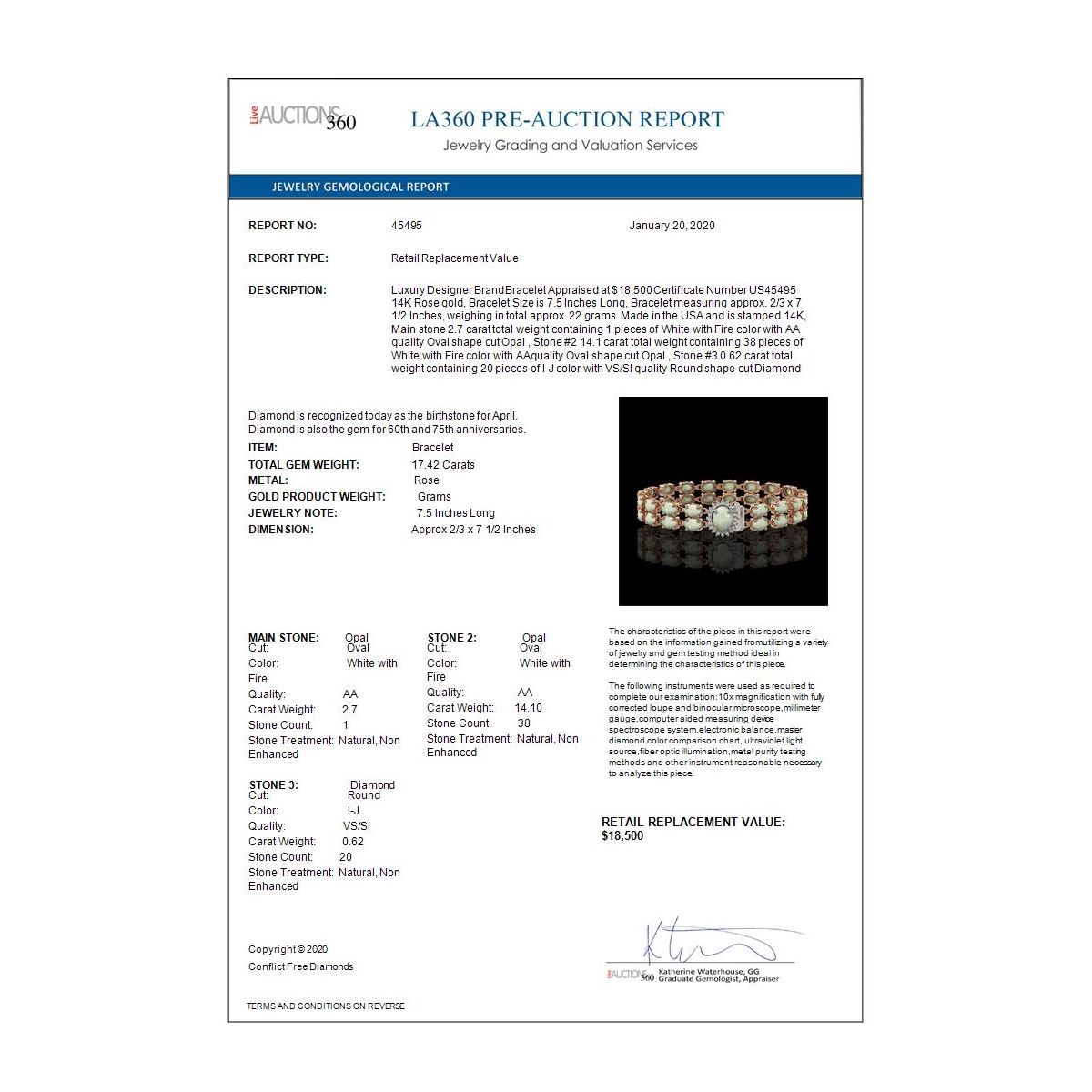 REF-336A4N - SKU: 45495 ---- 17.42 ctw Opal & Diamond Bracelet 14K Rose Gold