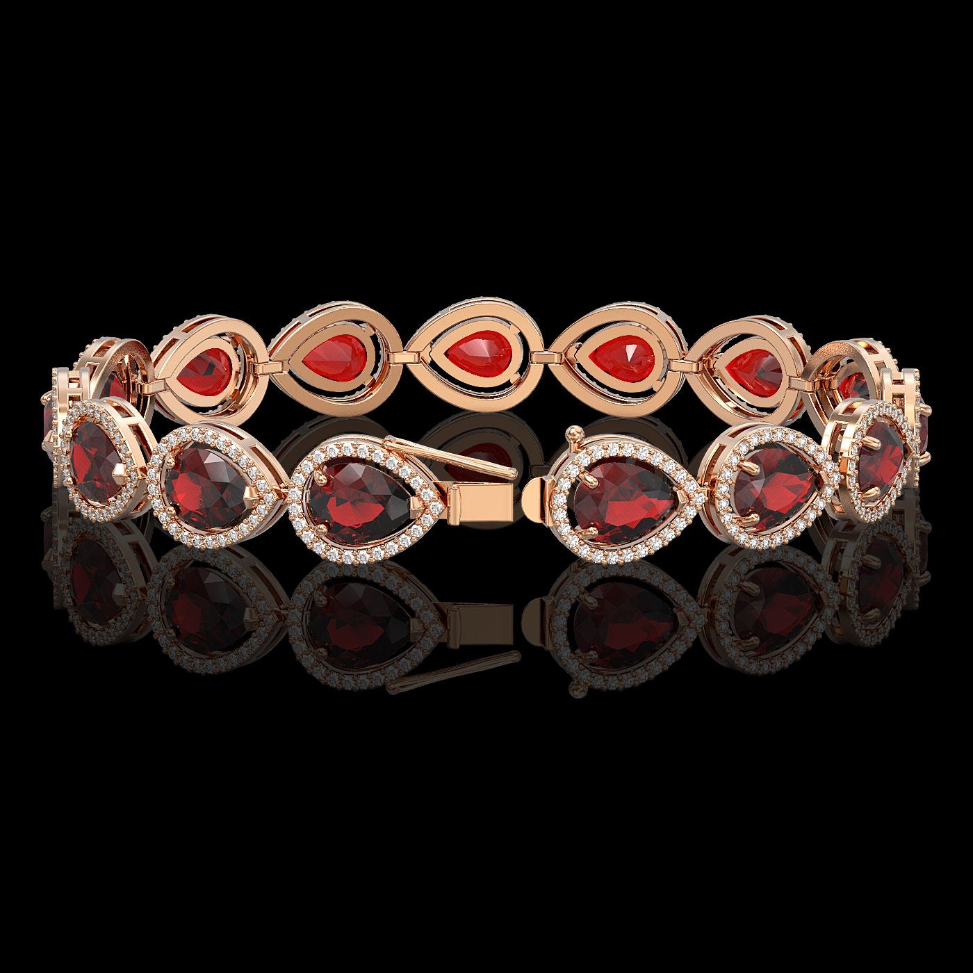 REF-283M5G - SKU: 41280 ---- 17.45 ctw Garnet & Diamond Micro Pave Halo Bracelet 10k Rose Gold