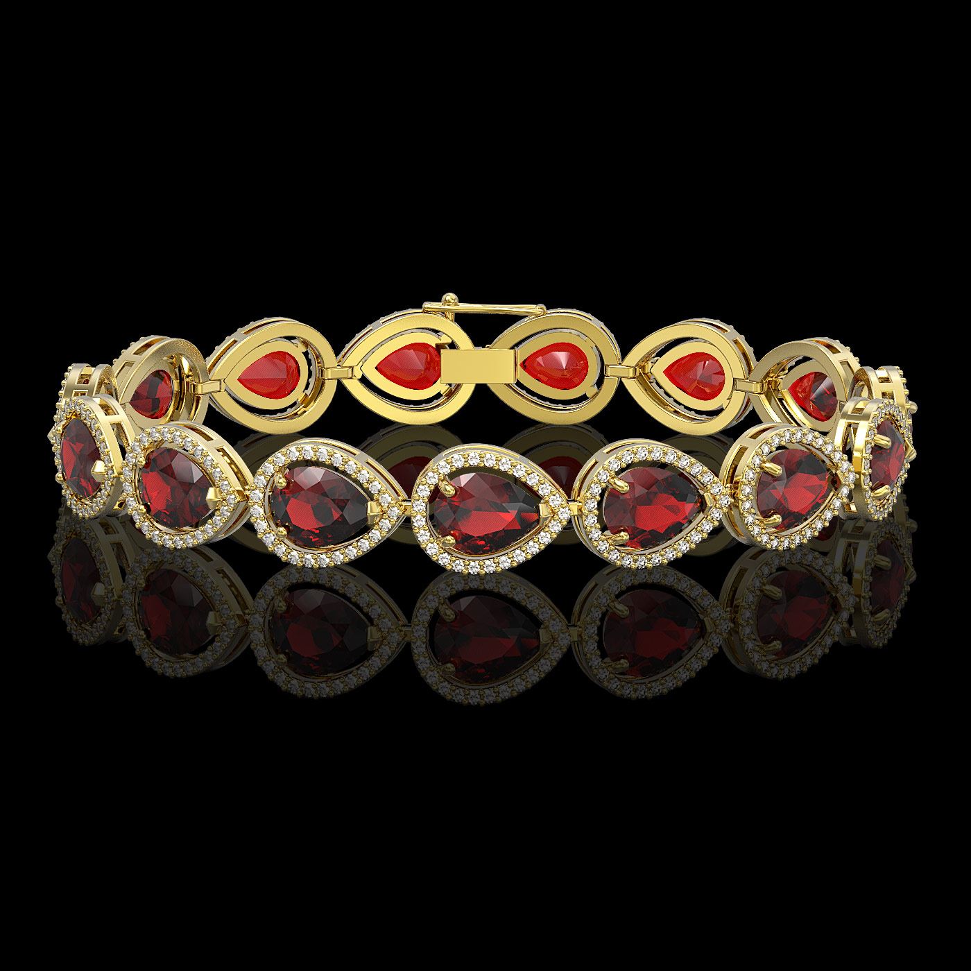 REF-283W5H - SKU: 41281 ---- 17.45 ctw Garnet & Diamond Micro Pave Halo Bracelet 10k Yellow Gold