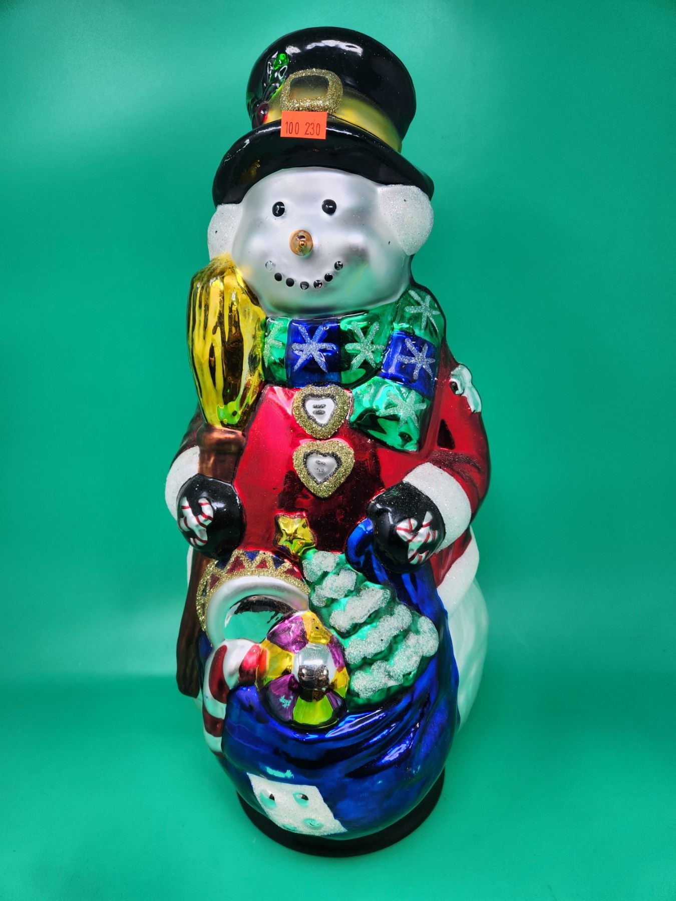 17.5  Hand-Painted & Hand-Blown Glass Snowman Figurine