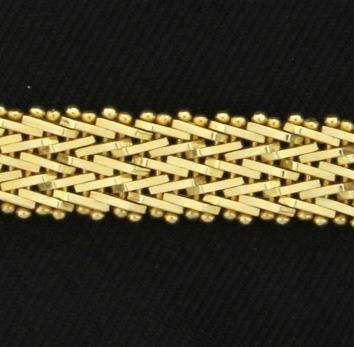 In 14K yellow gold it is 6mm thick and has a safety clasp. 30.4g