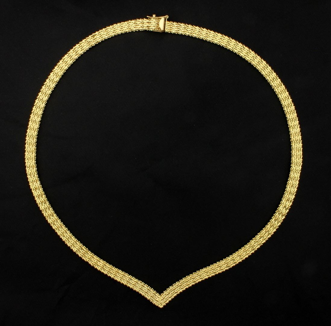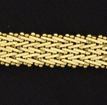 In 14K yellow gold it is 6mm thick and has a safety clasp. 30.4g