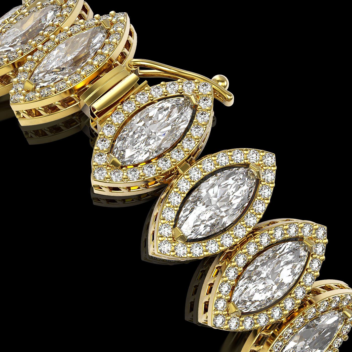 REF-3196H4A -42781 ---- 17.55 CTW Marquise Diamond Designer Bracelet 18K Yellow Gold ---- Luxury Designer Brand Bracelet Appraised at $140,650 Certificate Number US42781 18K Yellow gold, Bracelet Size is 7 Inches, Bracelet measuring approx. 12 mm x 7 Inches, weighing in total approx. 27 grams. Made in the USA and is stamped 18K, Main stone 13.23 carat total weight containing 27 pieces of I-J color with VS/SI quality Marquise shape cut Diamond , Stone #2 4.32 carat total weight containing 540 pieces of G-H color with VS/SI quality Round shape cut Diamond