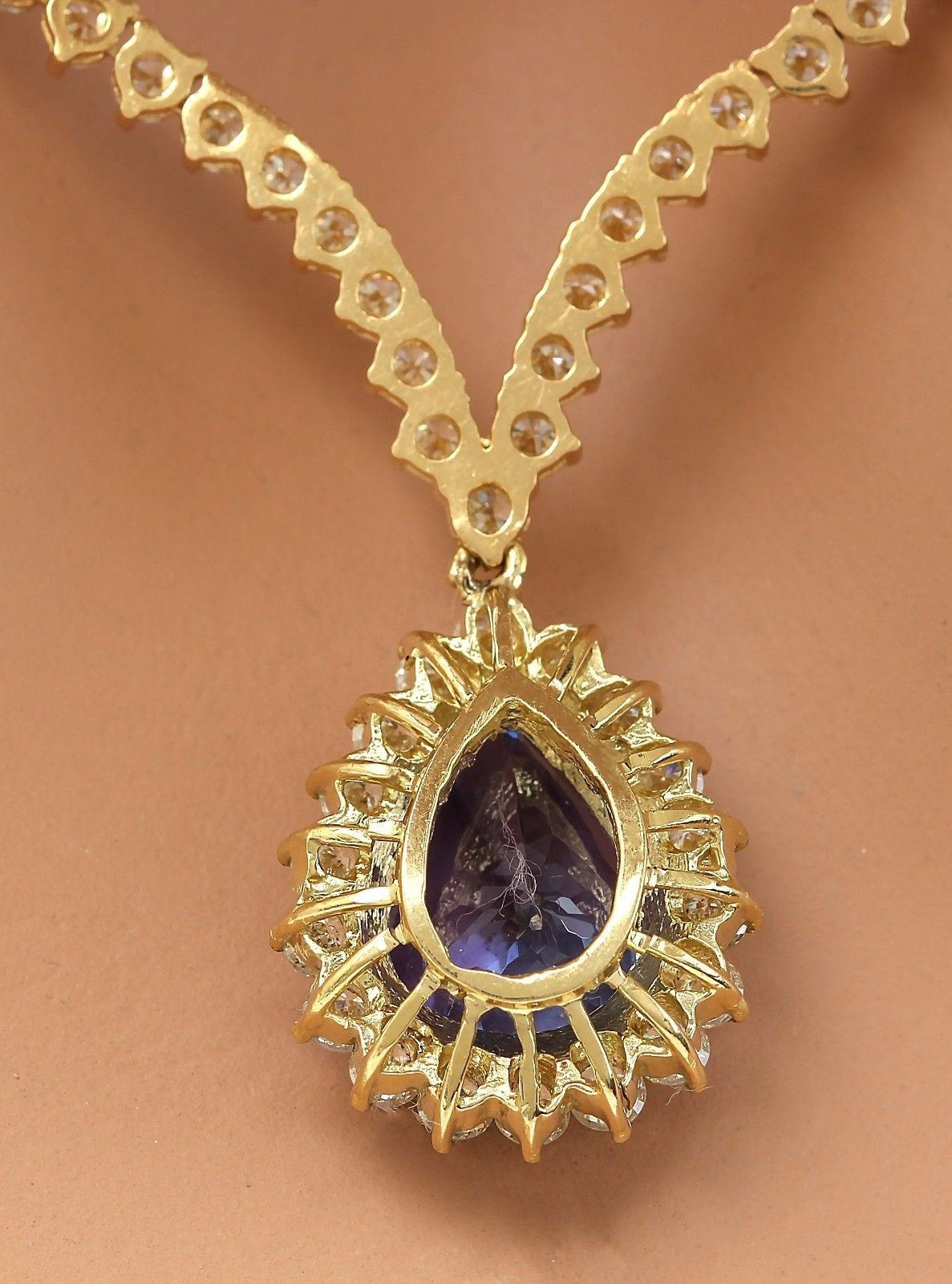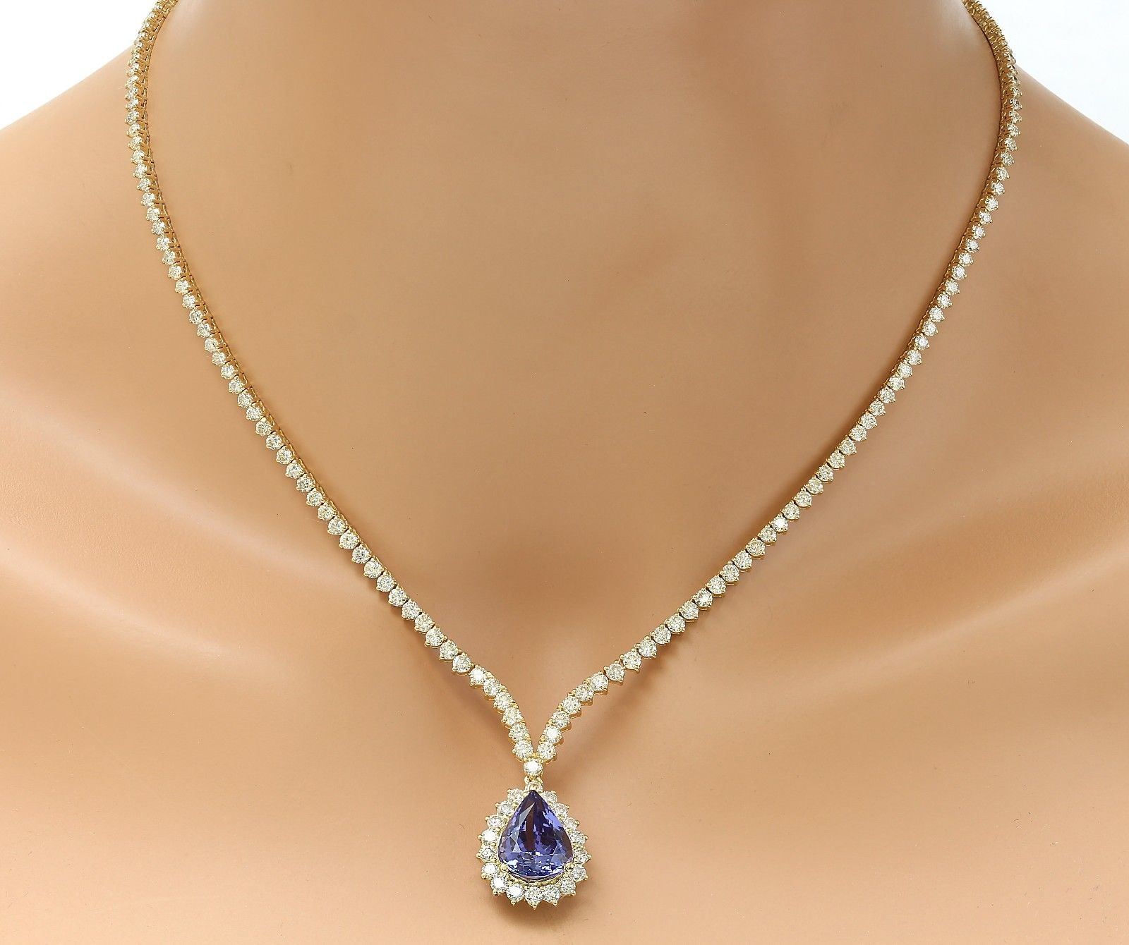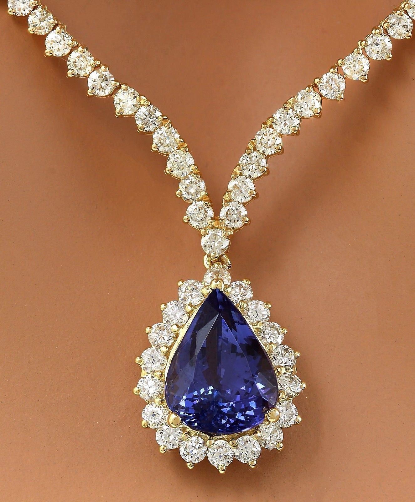 17.67 Carat Natural Tanzanite 18K Solid Yellow Gold Diamond Necklace