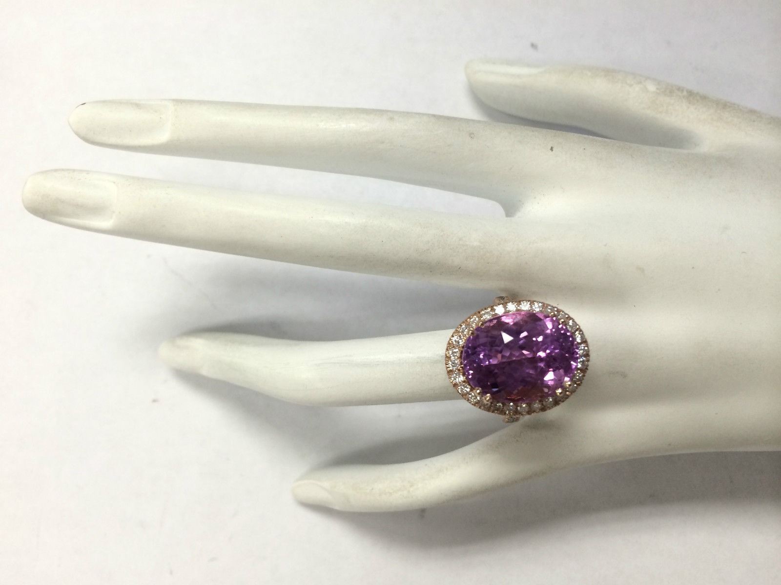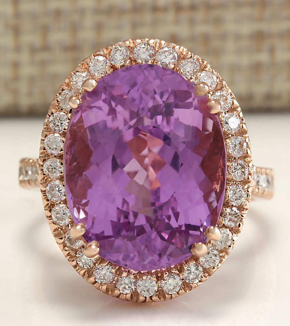 17.68 CTW Natural Kunzite And Diamond Ring 14K Solid Rose Gold