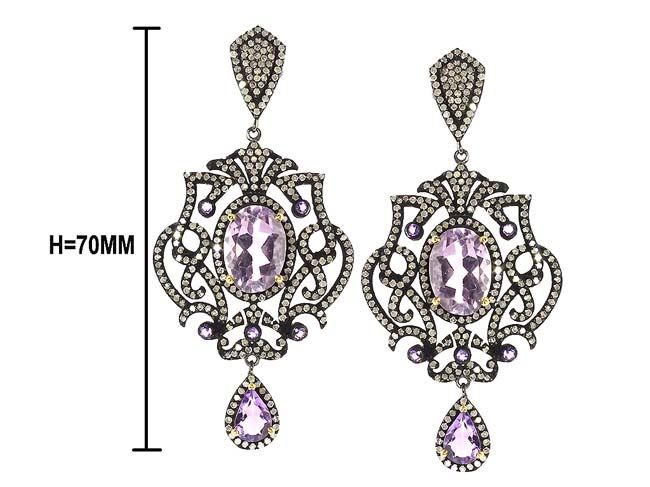 Amethyst AND DIAMOND EARRING/Diamond Count 1:/Diamond 1 TCW:3.93/Diamond Color & Clarity:J-L/I1-I2/Diamond Count 2:/Diamond 2 TCW:/Diamond Count 3:/Diamond 3 TCW:/Diamond Color & Clarity:/Gemstone Count 1: 4/Gemstone 1 TCW:13.79/Gemstone Type:Amethyst /Gemstone Count 2: /Gemstone 2 TCW:/Gemstone Type:/Gemstone Count 3: /Gemstone 3 TCW:/Gemstone Type:/Metal 1:14k GoldYellow Gold/Gram Weight:0.53over0.925 SilverSterling Silver /Weight/gram:/Gross Weight:21.66/Item-Size (HxW mm):70xW