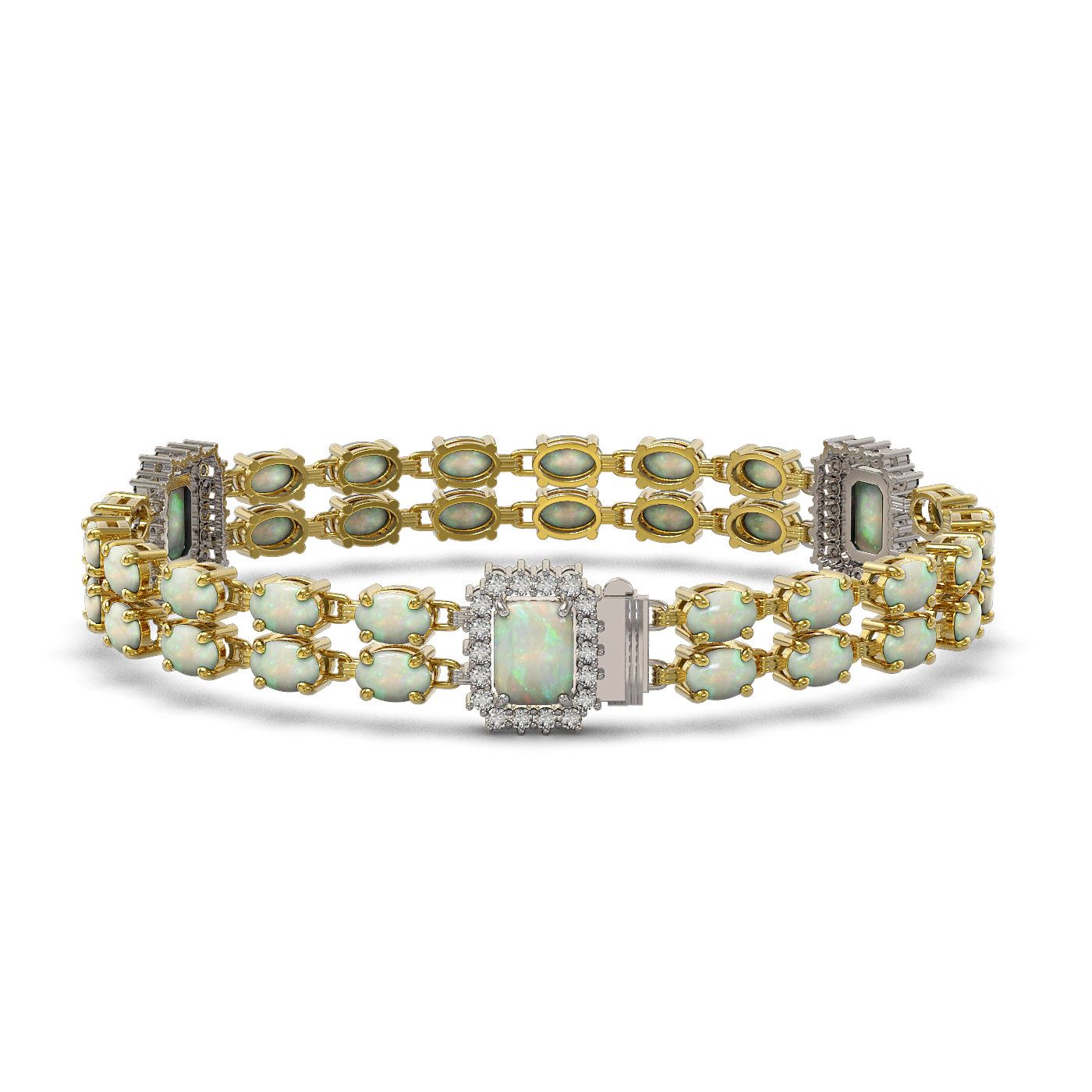 17.78 ctw Opal & Diamond Bracelet 14K Yellow Gold