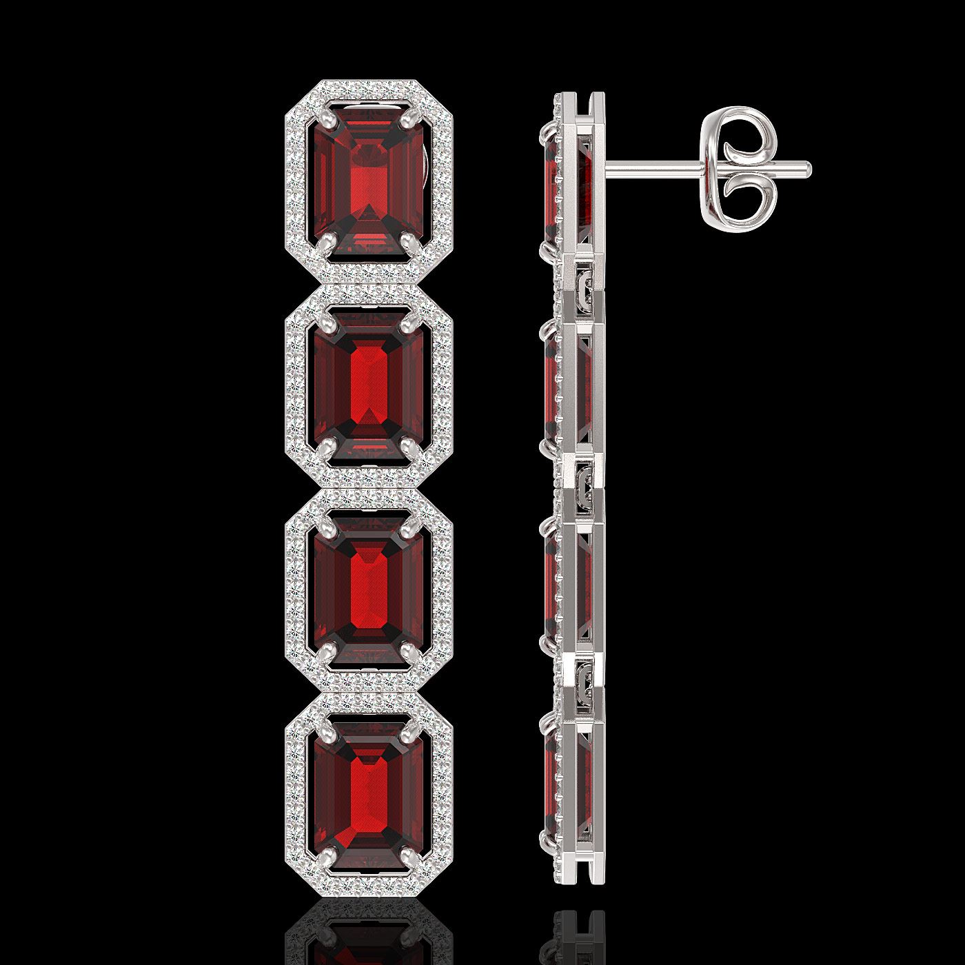 REF-174R2K - SKU: 41615 ---- 17.8 ctw Garnet & Diamond Micro Pave Halo Earrings 10k White Gold