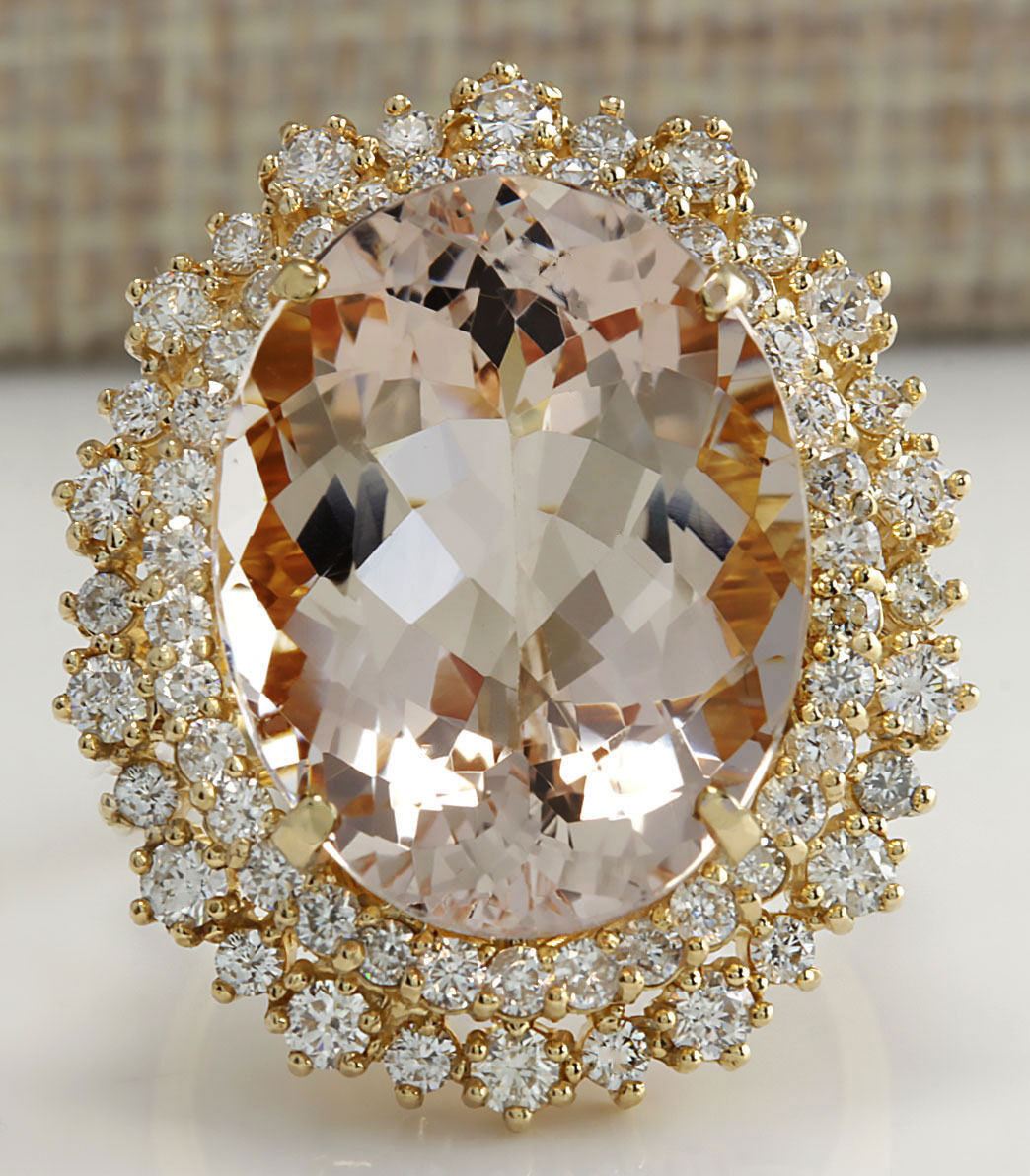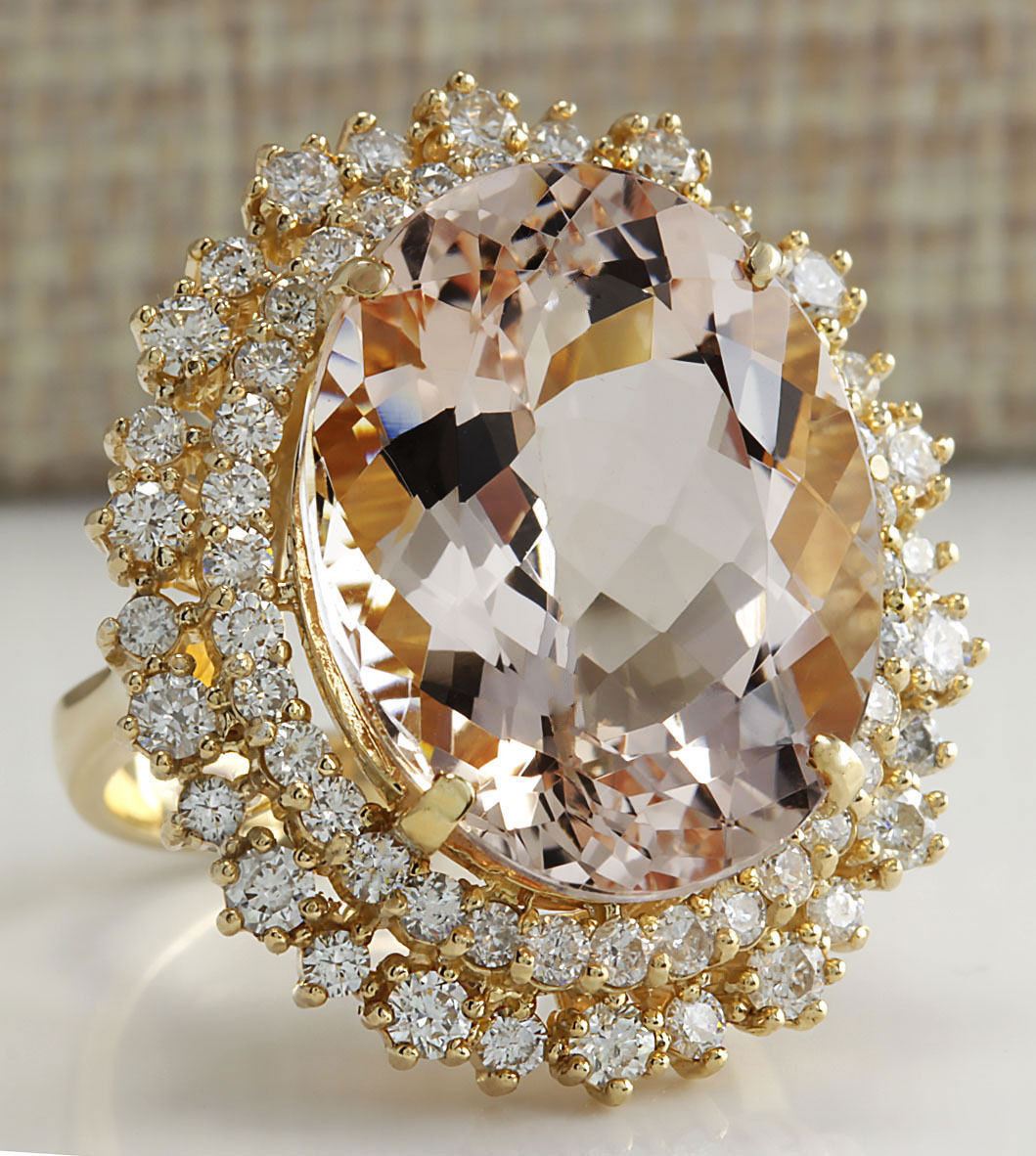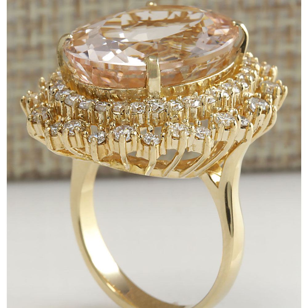17.81 CTW Natural Morganite And Diamond Ring In 14K Solid Yellow Gold