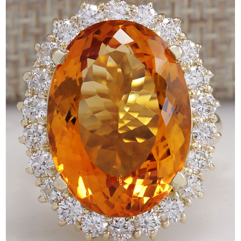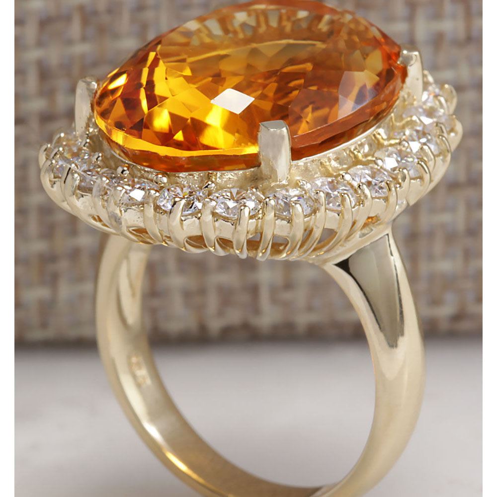 17.91 CTW Natural Citrine And Diamond Ring In 14K Solid Yellow Gold