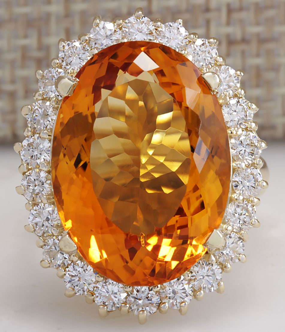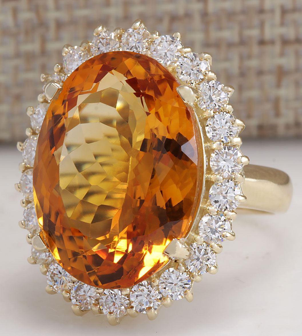 Stamped: 14K Ring Size: 6.5 Total Ring Weight: 7.2 Grams Diamond Weight: Total natural diamond weight is 1.65carat. SI1-SI2 clarity / G-H color Gemstone Weight: Total Natural Citrine Weight is 16.26ctw (Measures: 19.75x14.60mm) Face Measures: 25.50x20.58mm Main stone color: Yellow [SKU:703010]
