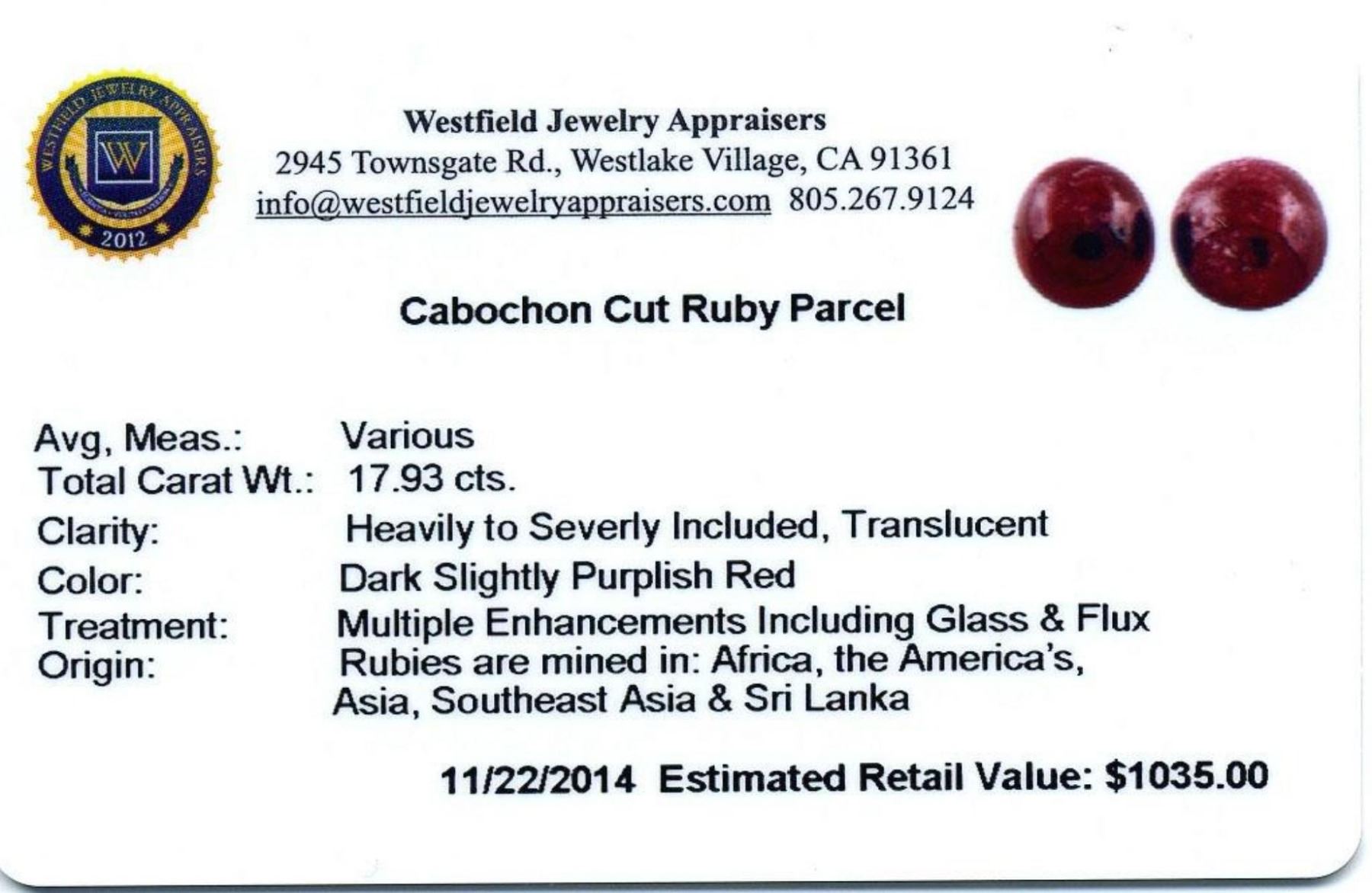 17.93ctw. Cabochon Cut Ruby Parcel. Westfield Appraised.
