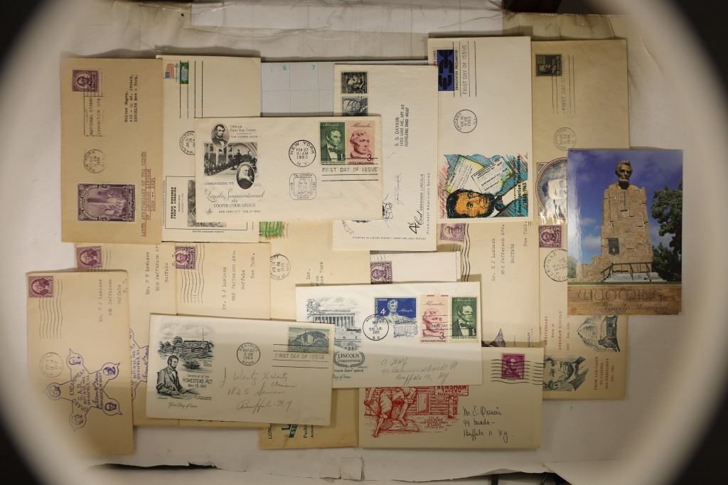 17-ABRAHAM LINCOLN FDC'S, POSTCARDS, LETTERS,