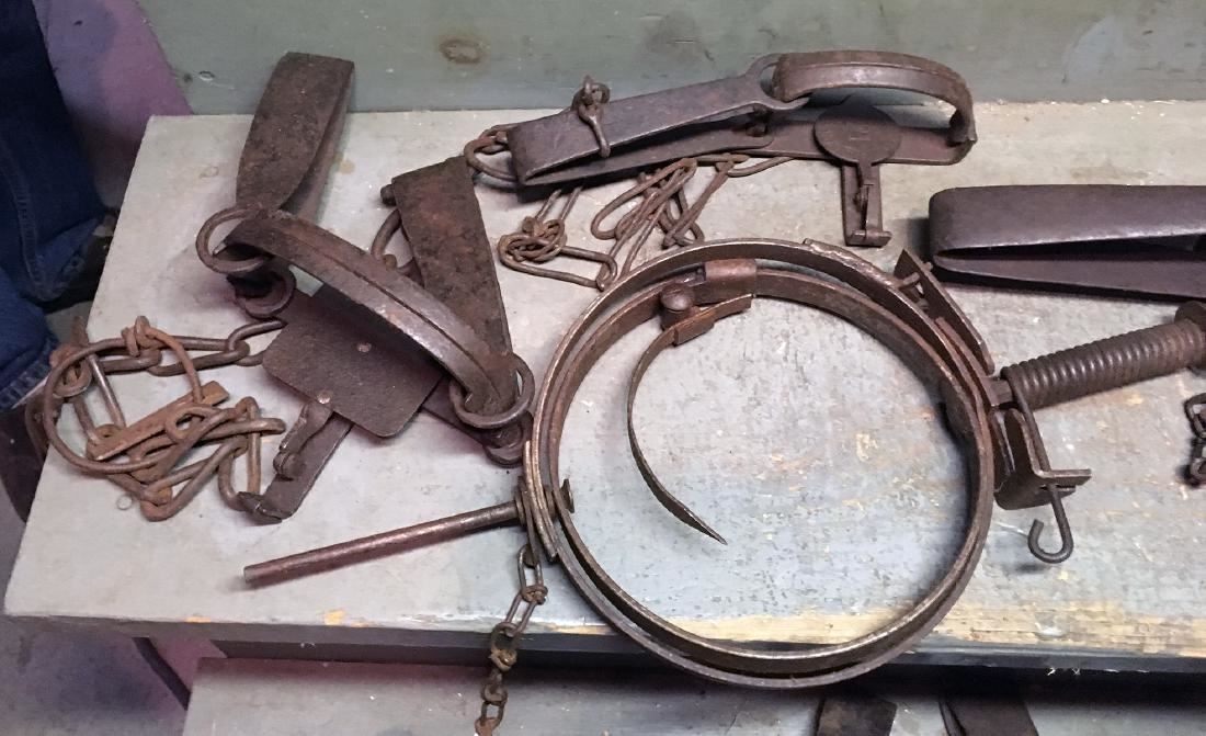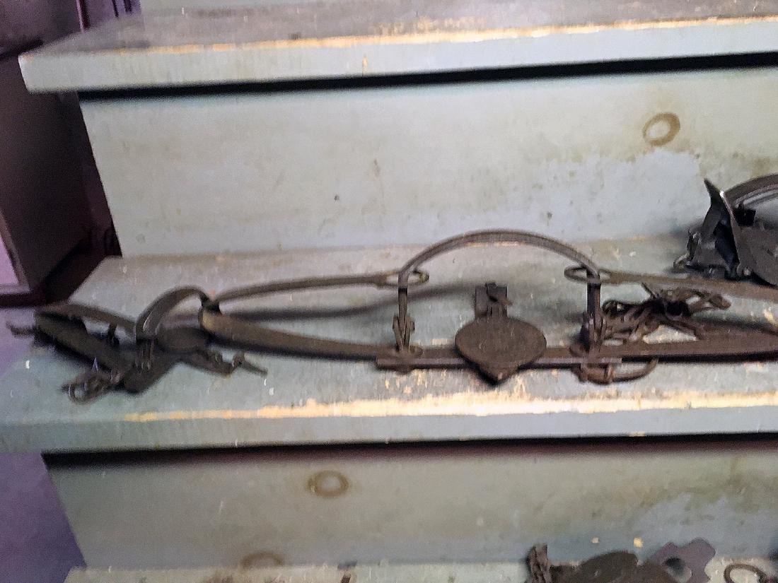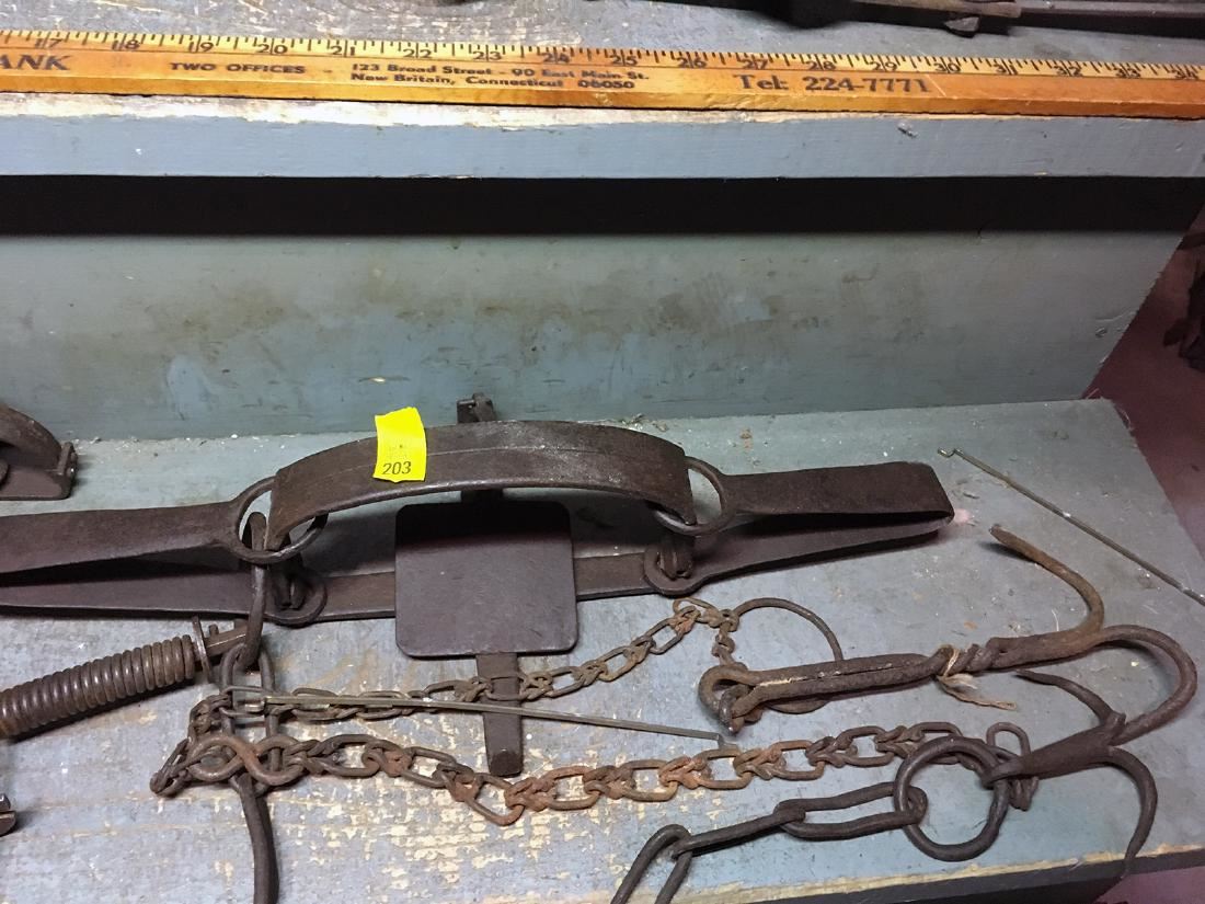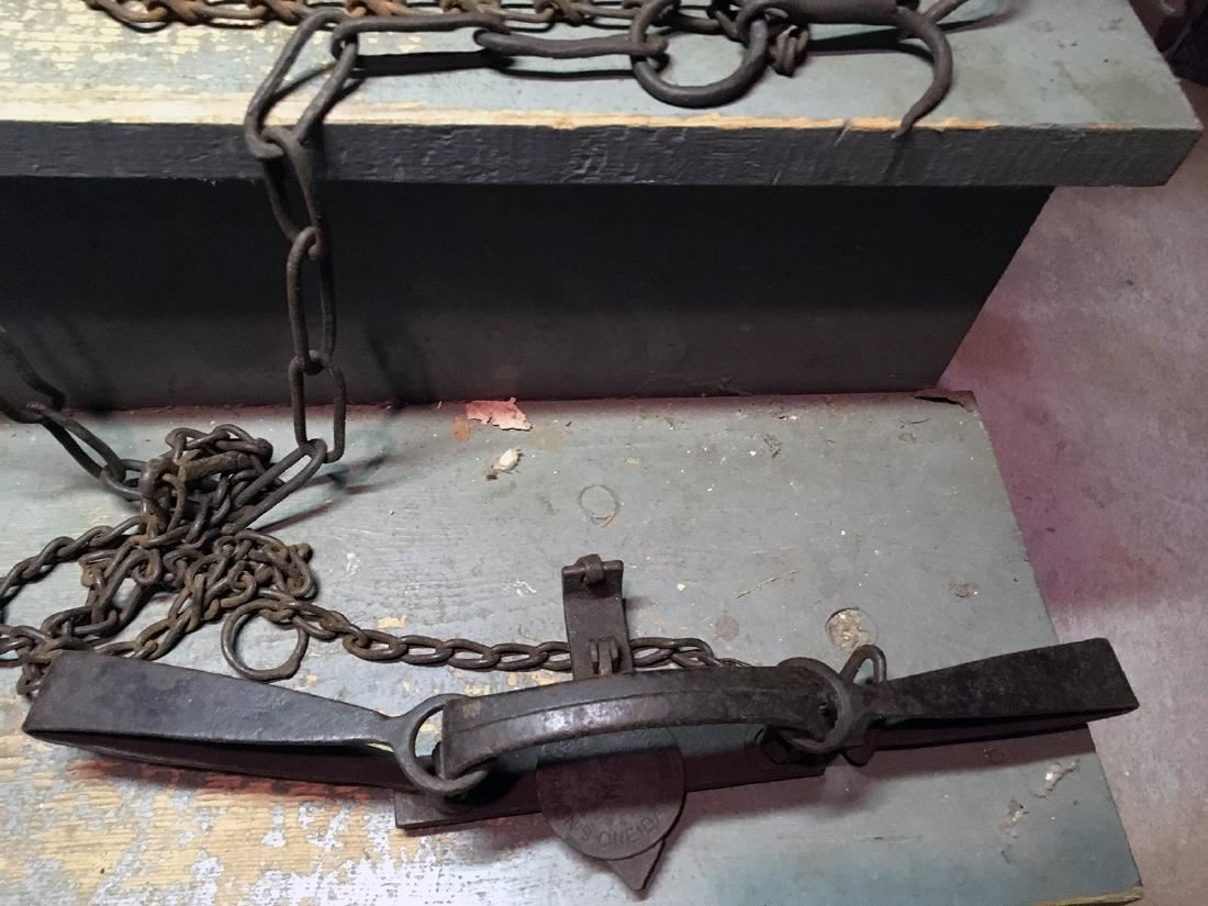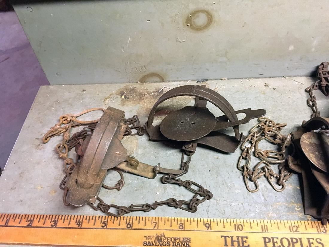 Approx. 17 steel traps including Newhouse No. 8, Blake and Lamb, Victor, including small and medium traps many with chains and hooks. Well cared for and oiled, part of a lifetime collection (RL).
