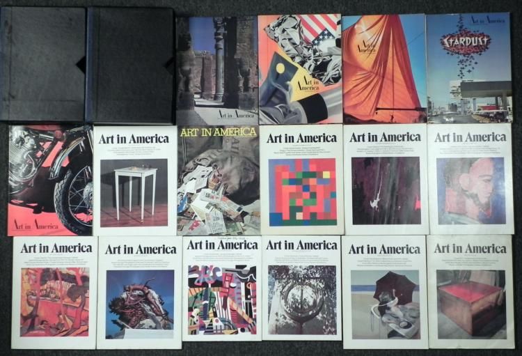 Here is a collection of 17 great art magazines, spanning the early 1970's art world. They come in two original holders. * Title: Art in America Dates: 1972 No. 1, 2, 3, 4, 5, 6 1973 No. 1 1974 Nos. 4, 6 1975 Nos. 2, 3, 4, 6 1976 No. 3, 4, 5, 6Condition: Very good