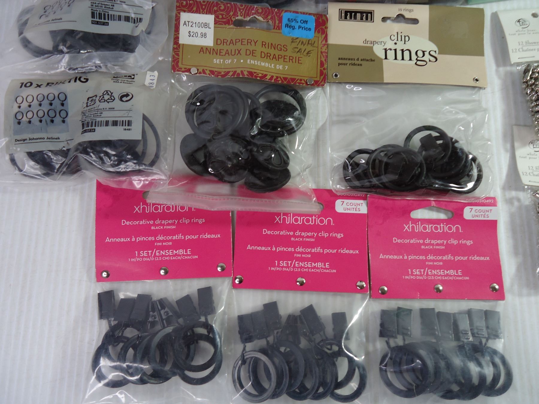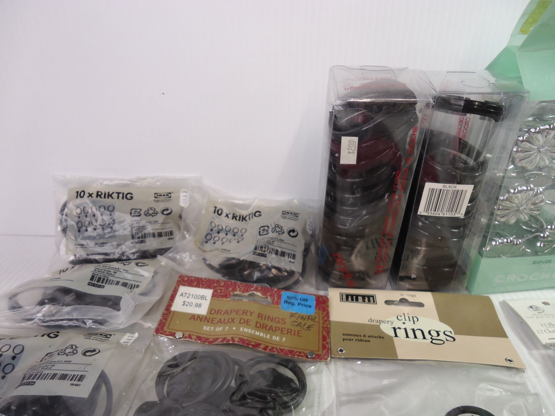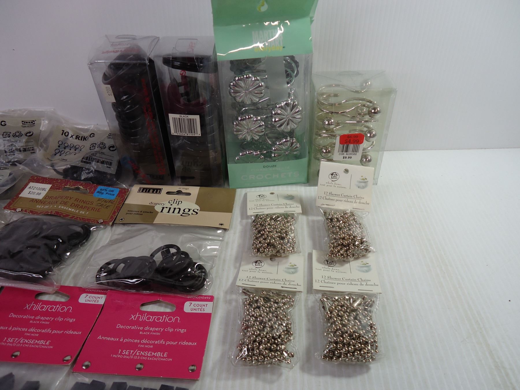 (17) Assorted Packages of Shower Curtain Rings, Clip Rings and Chains