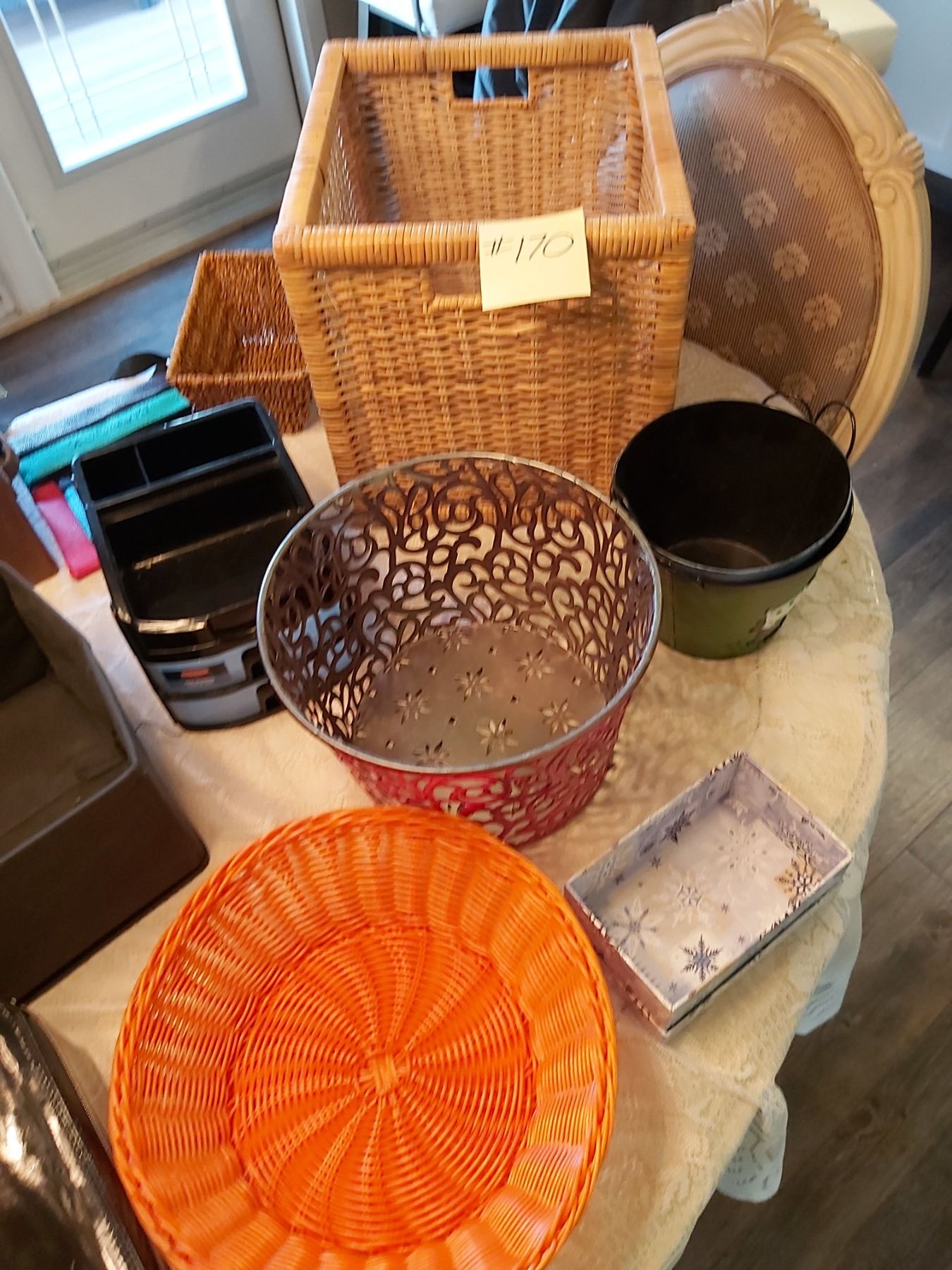 17 Assorted storage boxes (briefcase, baskets etc..)