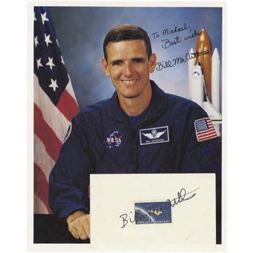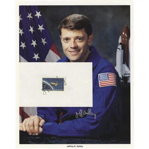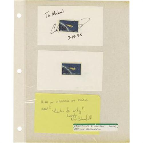 <B>Lot of Seventeen Astronaut, Aviator, and Engineer Signatures,</B></I> including: Barbara Morgan, William Graham, Duane Graveline, Charles Noriega, Mike Bloomfield, Dominick Gorie, Susan Still, Peter Wisoff, Carl Walz, Jeffery Ashby, and Bill McArthur. Each signature is on or near a space related stamp mounted on a 5" x 3" card. Wisoff, Ashby, and McArthur also signed an official NASA photograph. Walz, Bloomfield, and Still also signed notes. All cards, note, and photo are in acetate album pages. All are very fine.<BR><BR><b>Shipping:</b> Flat Material, Small (<a target="_blank" href="http://www.heritageauctions.com/common/shipping.php">view shipping information</a>)