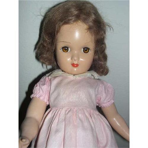 17" Beautiful Hard Plastic Doll Unmarked 1950's in a pink dress. Different look due to how eyebrows are painted. Doll has been restrung. Comes from a smoke free environment. Buyer to pay $20 for shipping, handling, and insurance. Thanks for viewing.