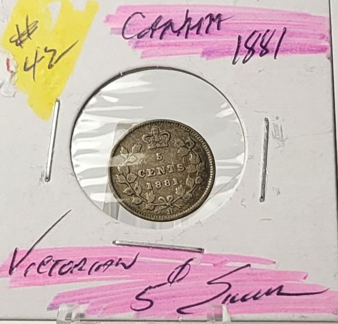 17) CANADIAN VICTORIAN 1881H 5 CENT COIN,