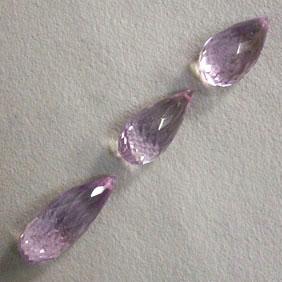 LOT OF 3 AMETHYST BRIOLETTE. THEY WEIGHT 17 CTS. TOP DRILLED. INCLUDED