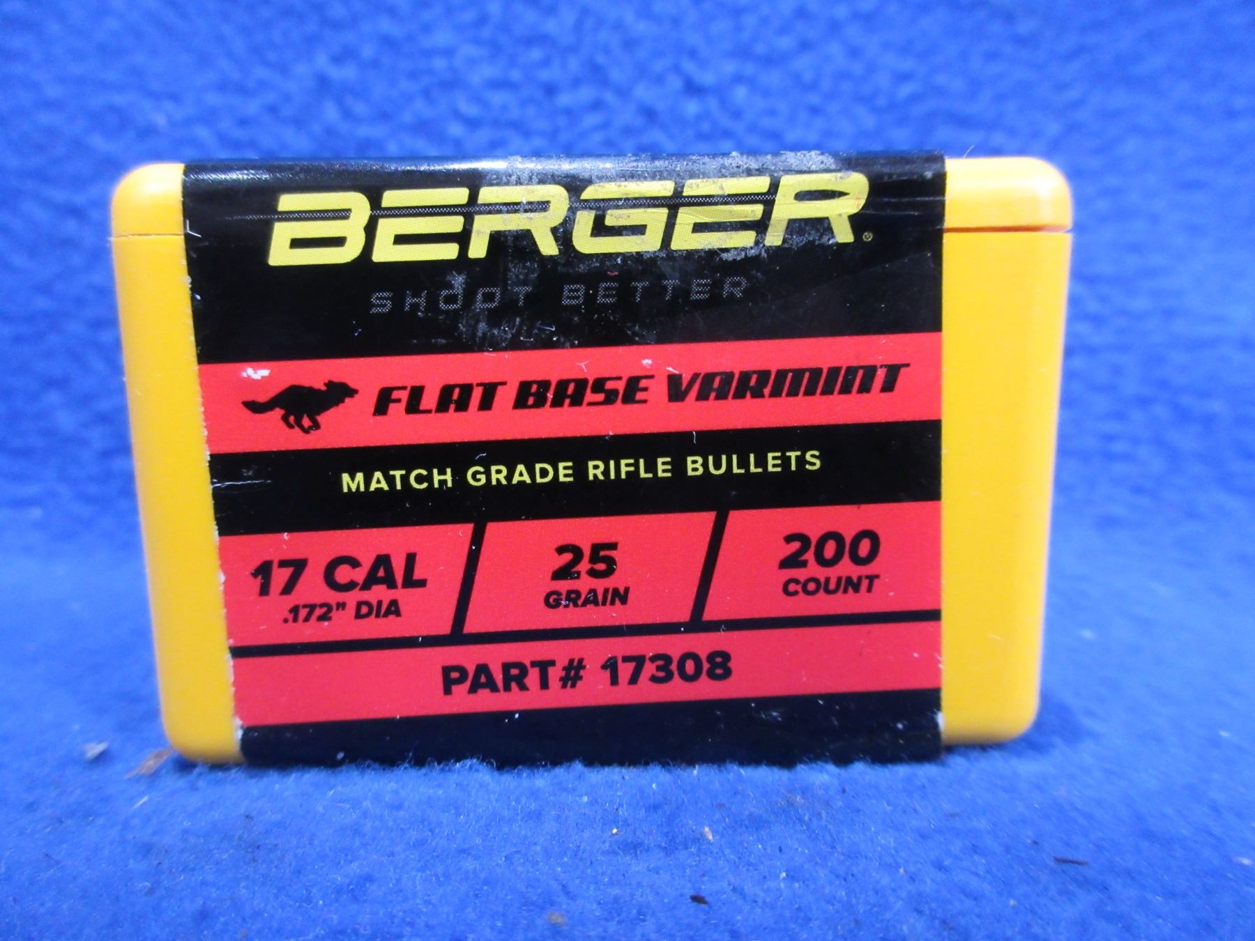 17 Cal. .172" 25gr FB HP Match Berger Bullets - Sealed Box of 200