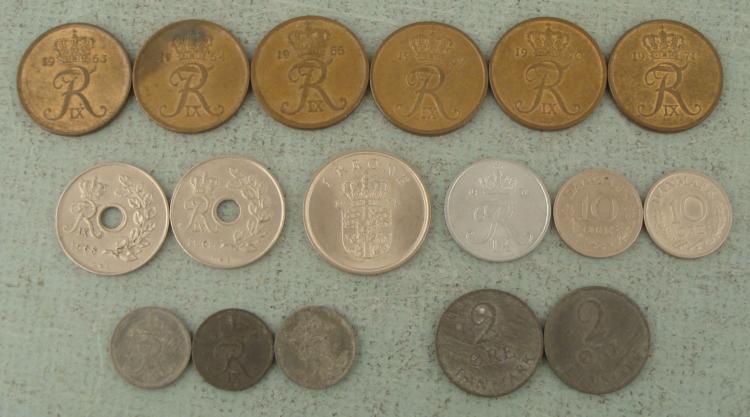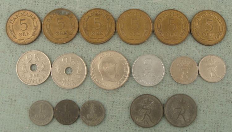 17 Coins from Denmark 1949-1971 1-25 Ore, Krone
