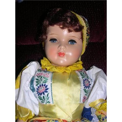 17" Czechoslovakia dressed doll. Her head is marked 46/8. She has a moveable head, arms, and legs so is a strung doll. She is a little loose so you might want to restring her. She has sleep eyes. She is dressed in her all original costume. Doll comes from a smoke free environment. Buyer to pay 15.00 shipping, handling, and insurance. Thanks for viewing.
