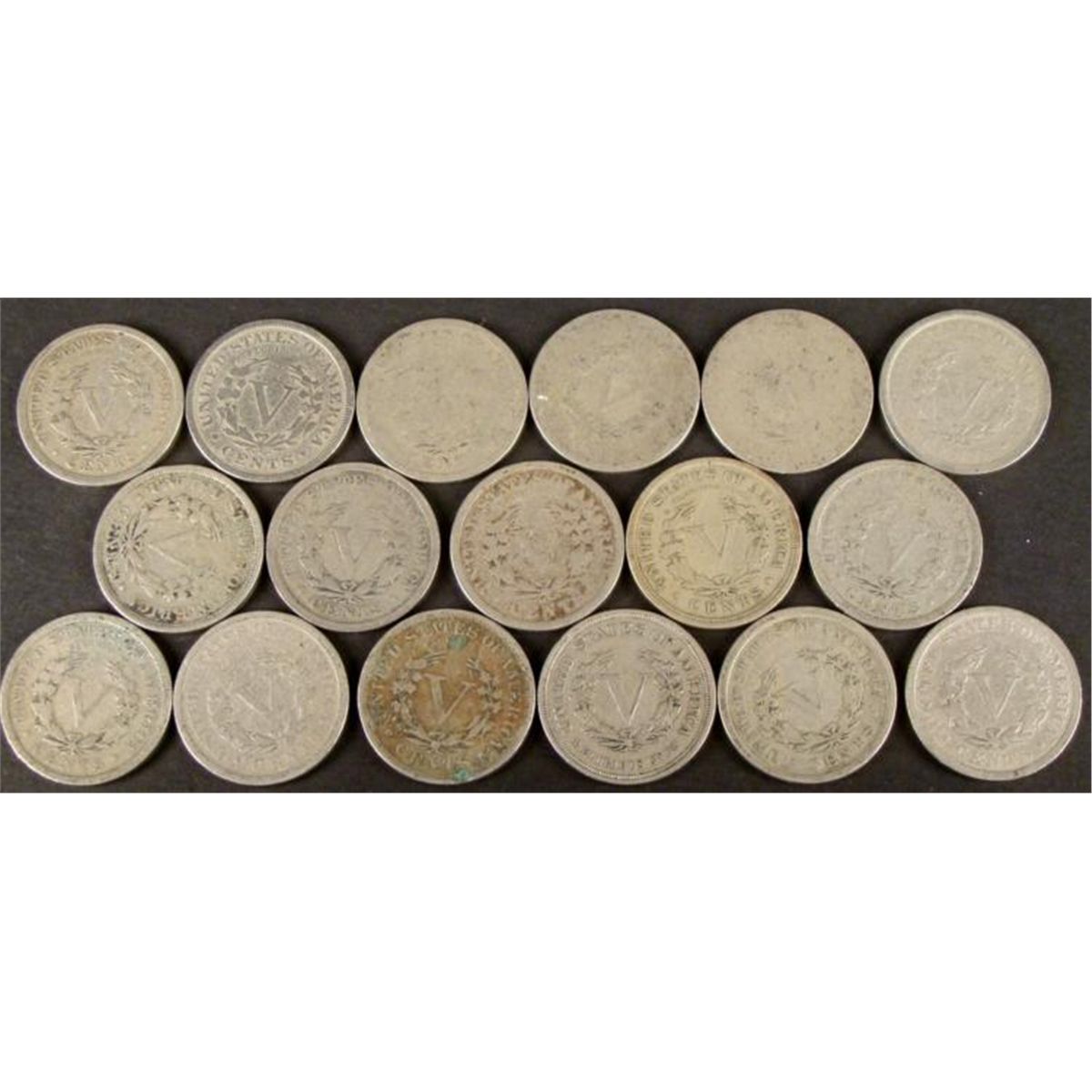 17 Different Date V Nickels Condition: Better than Average CirculatedDetails: Many with full "Liberty"