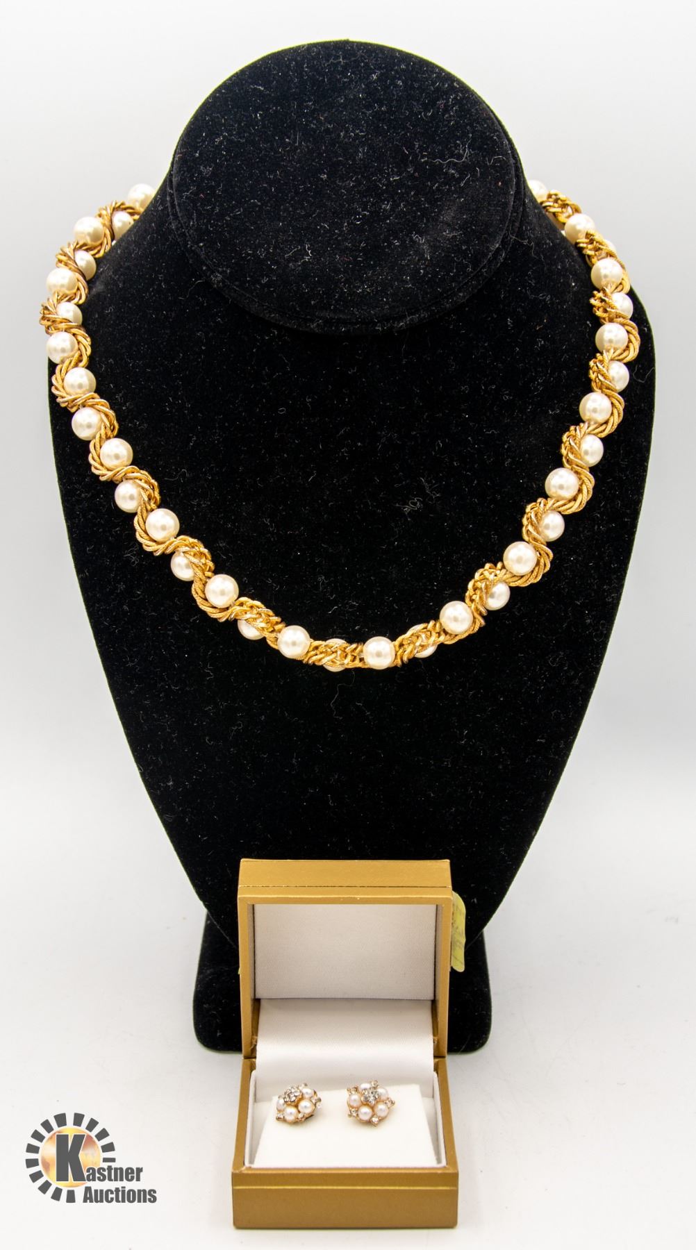 FEATURING FAUX PEARLS. C/W FLORAL FAUX PEARL CLUSTER STUD EARRINGS IN GOLD TONE SETTING WITH CLEAR RHINESTONES **ALL ITEMS MUST BE REMOVED BY 5PM SATURDAY, MAY 20TH 2023. ALL REMAINING ITEMS WILL BE SUBJECT TO A $6.00 PER DAY STORAGE CHARGE. ANY ITEMS REMAINING AFTER MONDAY, JUNE 5TH, 2023 WILL BE CONSIDERED FORFEITED. NO REFUNDS WILL BE ISSUED FOR FORFEITED ITEMS. TO SCHEDULE A PICK UP APPOINTMENT CLICK HERE