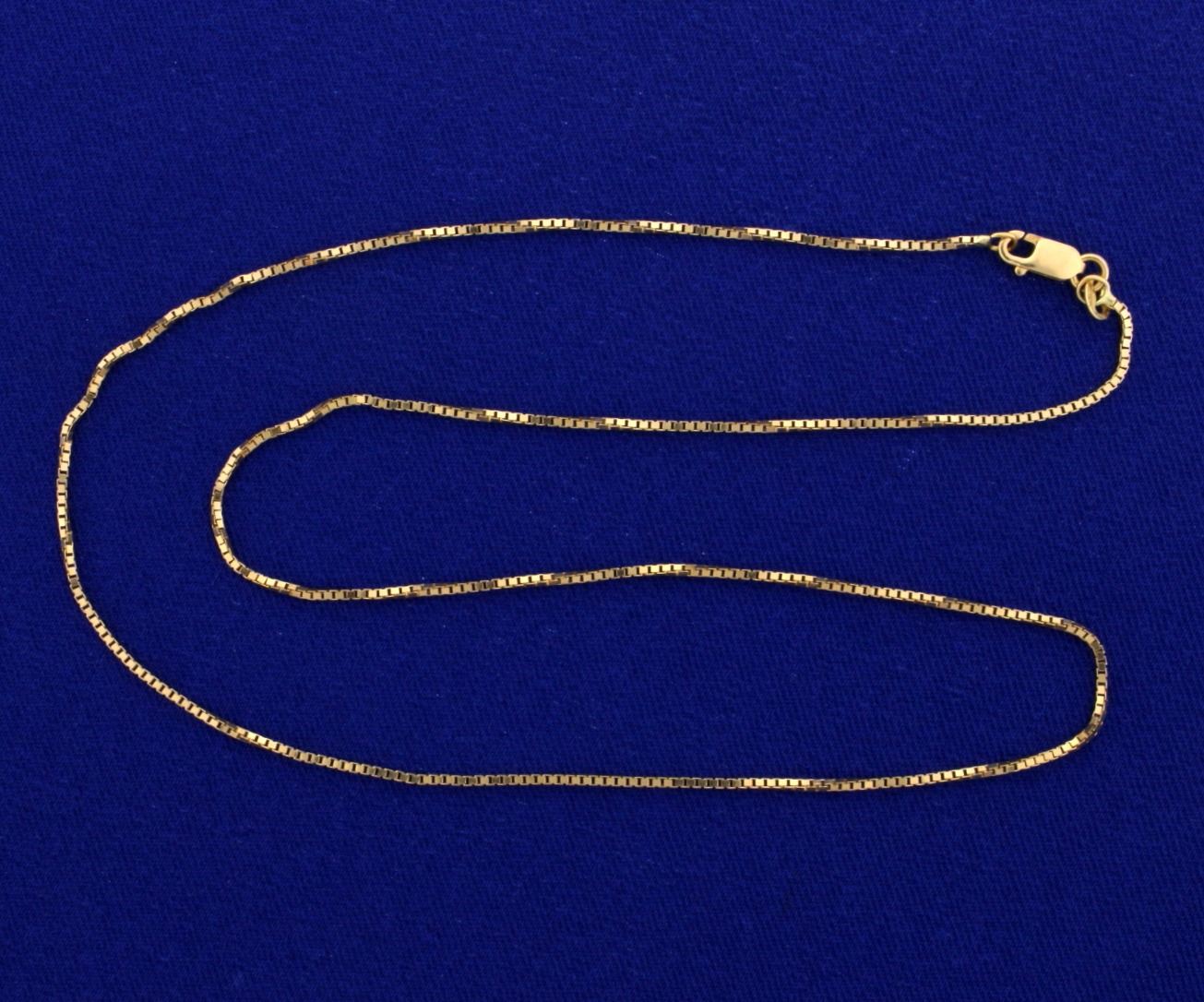In 14k yellow gold. 1.1mm thick with lobster clasp. 2.9g.