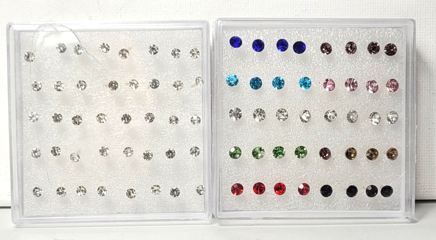 20 PAIRS ARE CLEAR AND 20 PAIRS ARE ASSORTED COLORS. JEWELERY