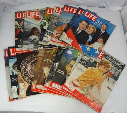 Includes: Aug 16, 1968 The NIXONS and the AGNEWS Finale at Miami Beach, Sept 6, 1968, Feb 11, 1957, Aug 9, 1968, Aug 2, 1968, July 26, 1968, March 4, 1957, April 1, 1957, Sept 30, 1957, April 15, 1957, Feb 25, 1957, Feb 18, 1957, Special two-in-one Holiday Issue, July 5, 1968, Aug 23, 1968, Aug 30, 1968, and June 6, 1960. Average Condition. Slight Attic Smell. Est. Value $135.00 - $165.00.