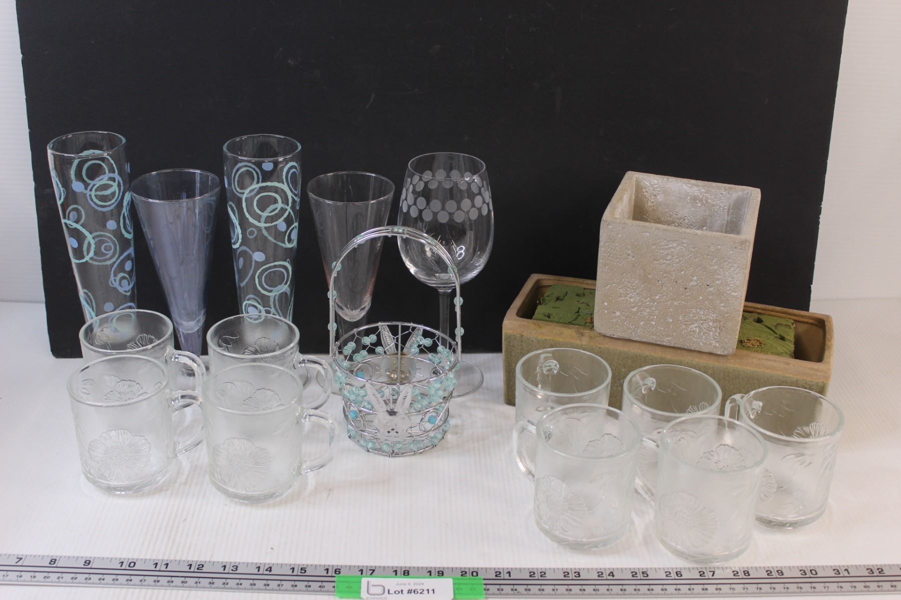 (17) Lot of Glasses and 2 - Small Stoneware Planters