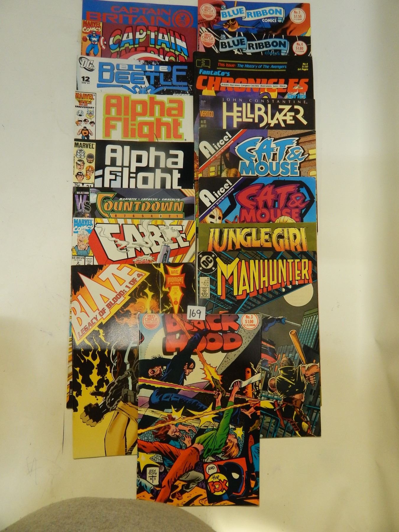 17 MISC COMICS/CAPTAIN BRITAIN/BLUE RIBBON/HELBLAZER/CTA MOUSE/JUNGLE GIRL/CAPTAIN AMERICA/ALPHA FIGHT/COUNT DOWN/CABLE/BLAZE/BLACK HOOD