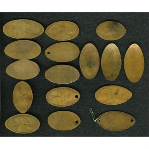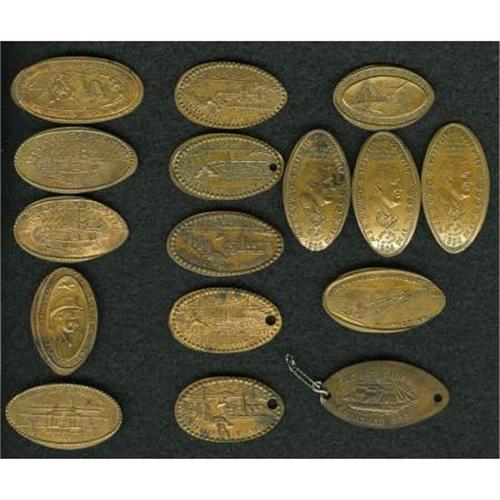 <B>17-Piece Lot of Elongated Coins.</B></I> Includes: <B>Cal-al-1; Cal-ae-4 & 6; O.F.P.-11; GG (five pieces); Cal-GGB-2; FDR-5 (three pieces); Atlantic City, N.J.; </B></I>and <B>Old Ironsides 5 & 6. </B></I>A nice start to a collection.<BR><BR><b>Shipping:</b> Coins & Currency (<a target="_blank" href="http://www.heritageauctions.com/common/shipping.php">view shipping information</a>)