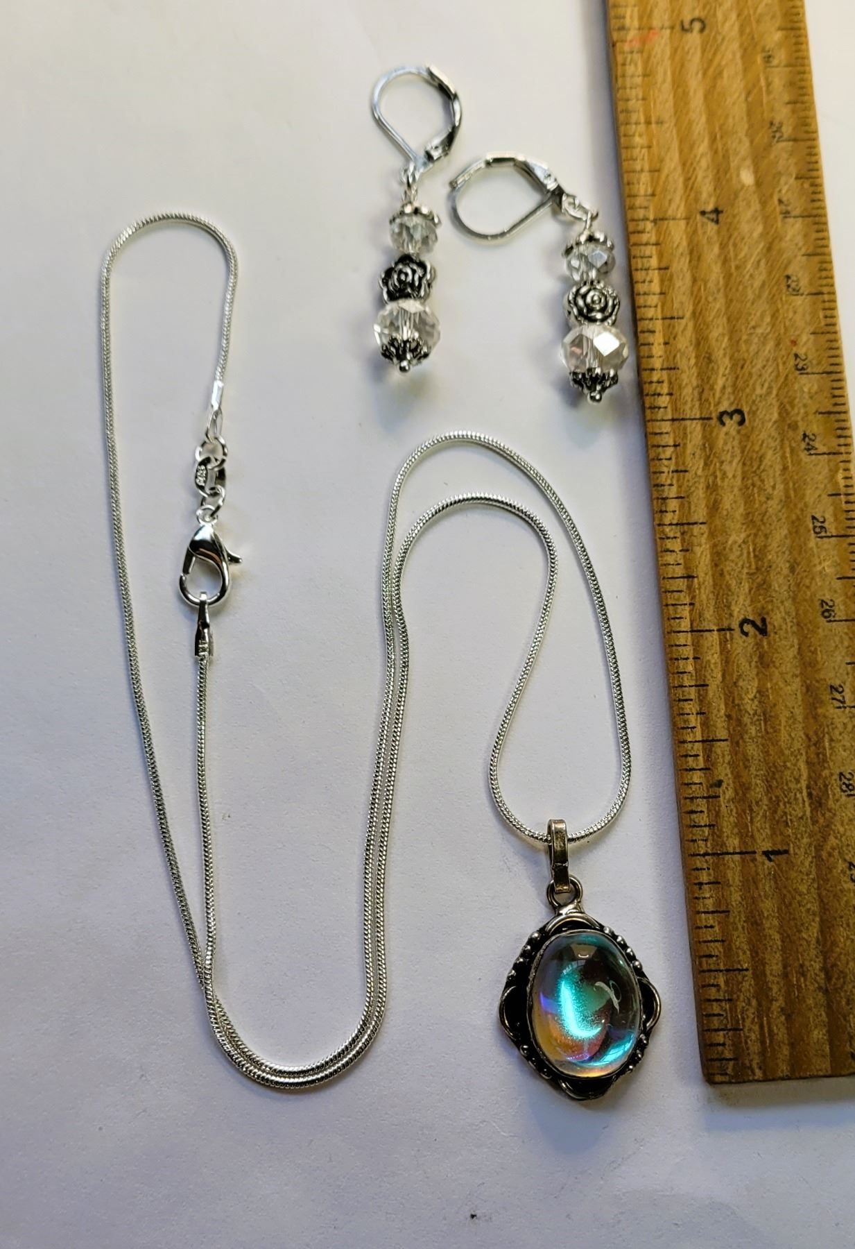 18" SNAKE CHAIN & COORDINATING SWAROVSKI CRYSTSAL DROP EARRINGS ON NICKLE FREE LEVER BACK WIRES. JEWELLERY