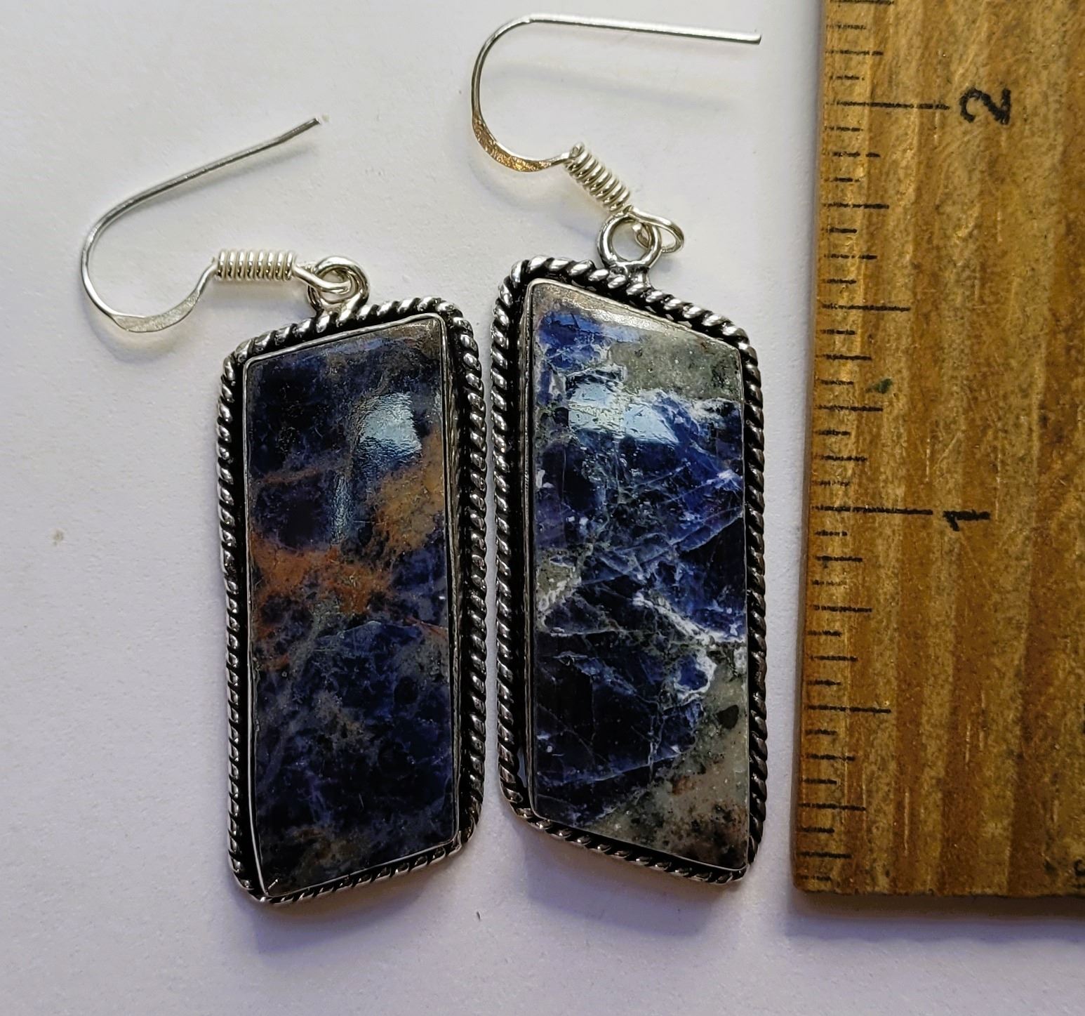 EARRINGS, SET IN 925 STAMPED SILVER PLATE, 2.5" IN LENGTH. JEWELLERY
