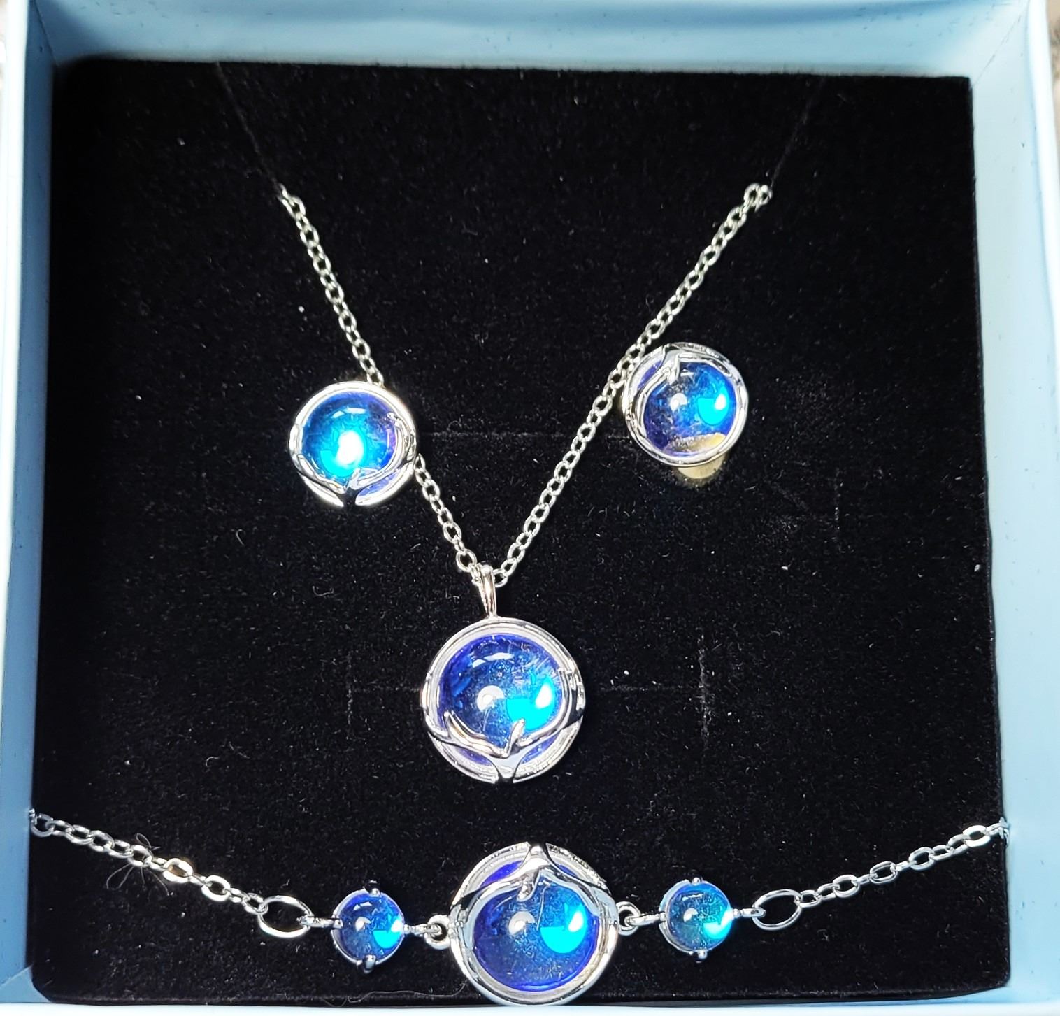 CRYSTAL STUD EARRINGS, PENDANT ON 18" CHAIN WITH 2" EXTENDER AND 7" BRACELET WITH 1.25" EXTENDER.  JEWELERY