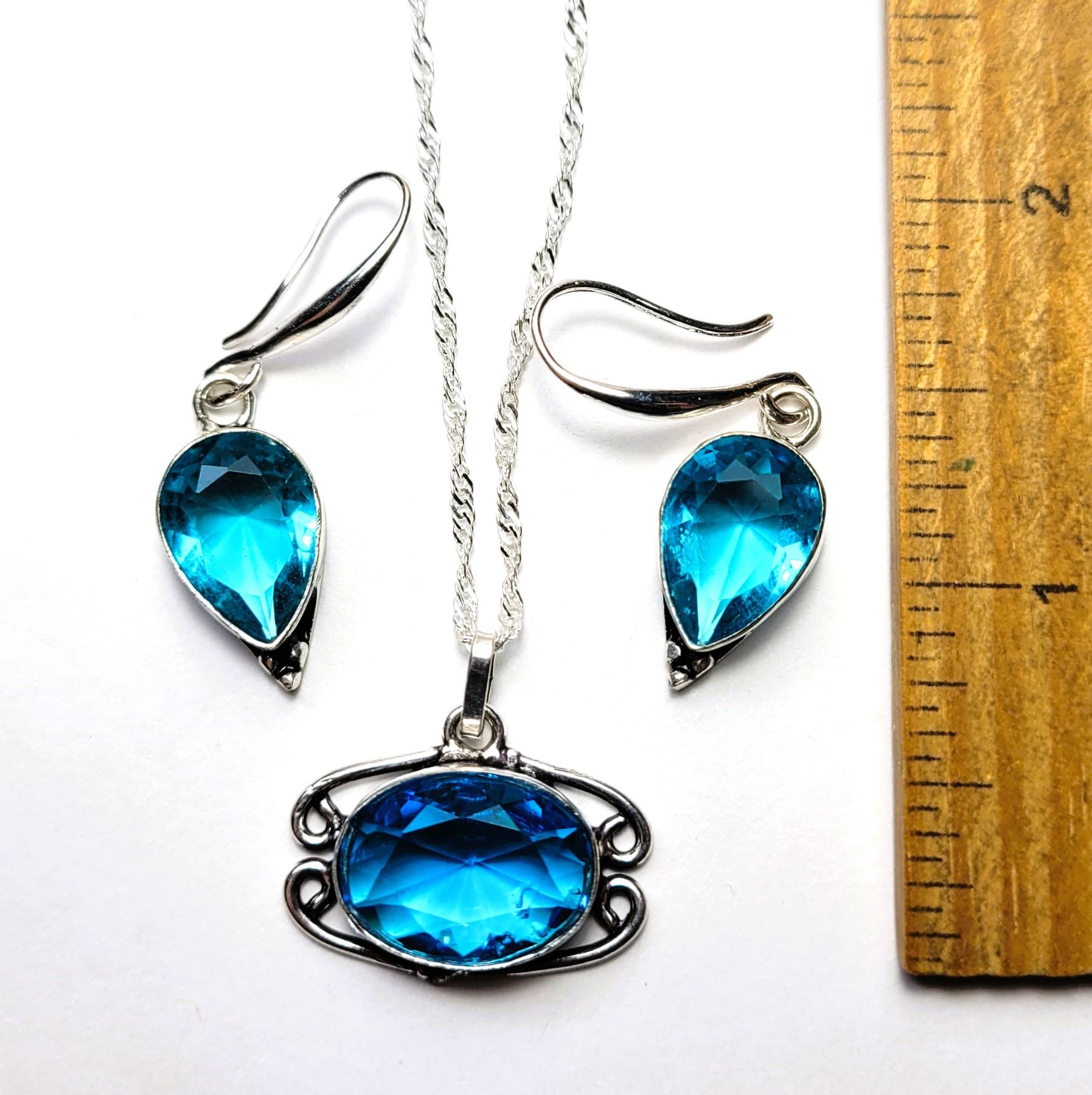 TOPAZ DROP EARRINGS AND UNIQUE PENDANT ON 18" WAVE CHAIN. JEWELRY